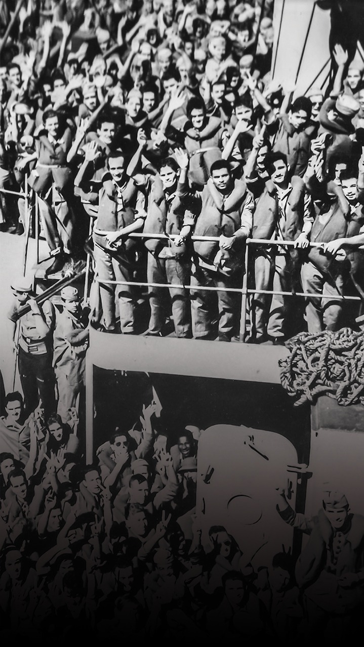 O primeiro escalão de desembarque da Força Expedicionária Brasileira trouxe 4.931 combatentes de volta ao Brasil.