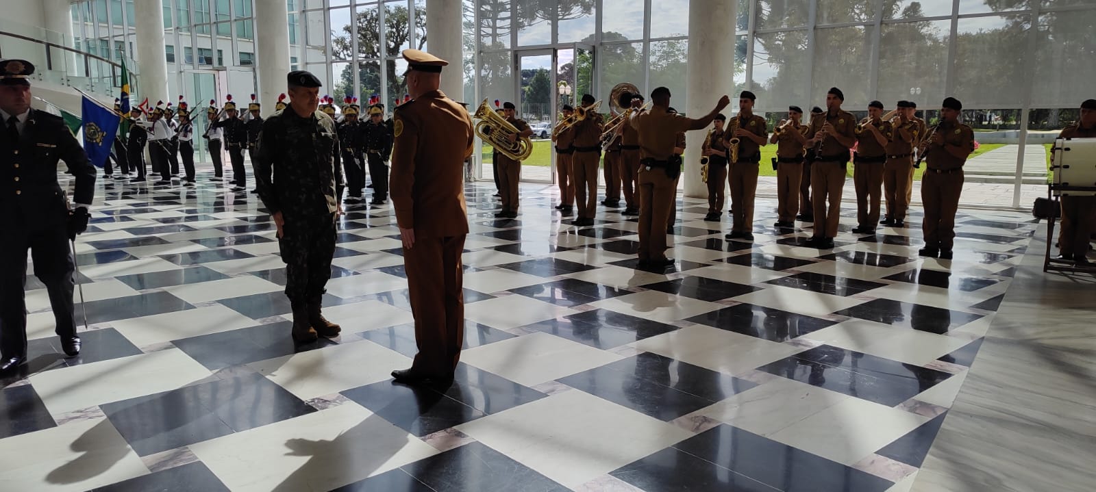 Curitiba (PR) – O Comandante do Exército Brasileiro, General de Exército Tomás Miguel Miné Ribeiro Paiva, realizou a sua primeira visita institucional à 5ª Divisão de Exército, tropa que comandou entre 2018 e 2019. O comandante chegou à capital paranaense na sexta-feira (23/6) e o primeiro compromisso foi uma visita de cortesia ao Governador do Estado do Paraná, Carlos Massa Ratinho Júnior. O encontro teve a presença também do Chefe do Estado-Maior do Exército, do Comandante Militar do Sul e do Comandante da 5ª Divisão de Exército. Entre outros assuntos, o General Tomás tratou sobre a realização da Operação Paraná III, exercício que ocorrerá em agosto na região oeste do estado, com a participação de tropas de 15 países.