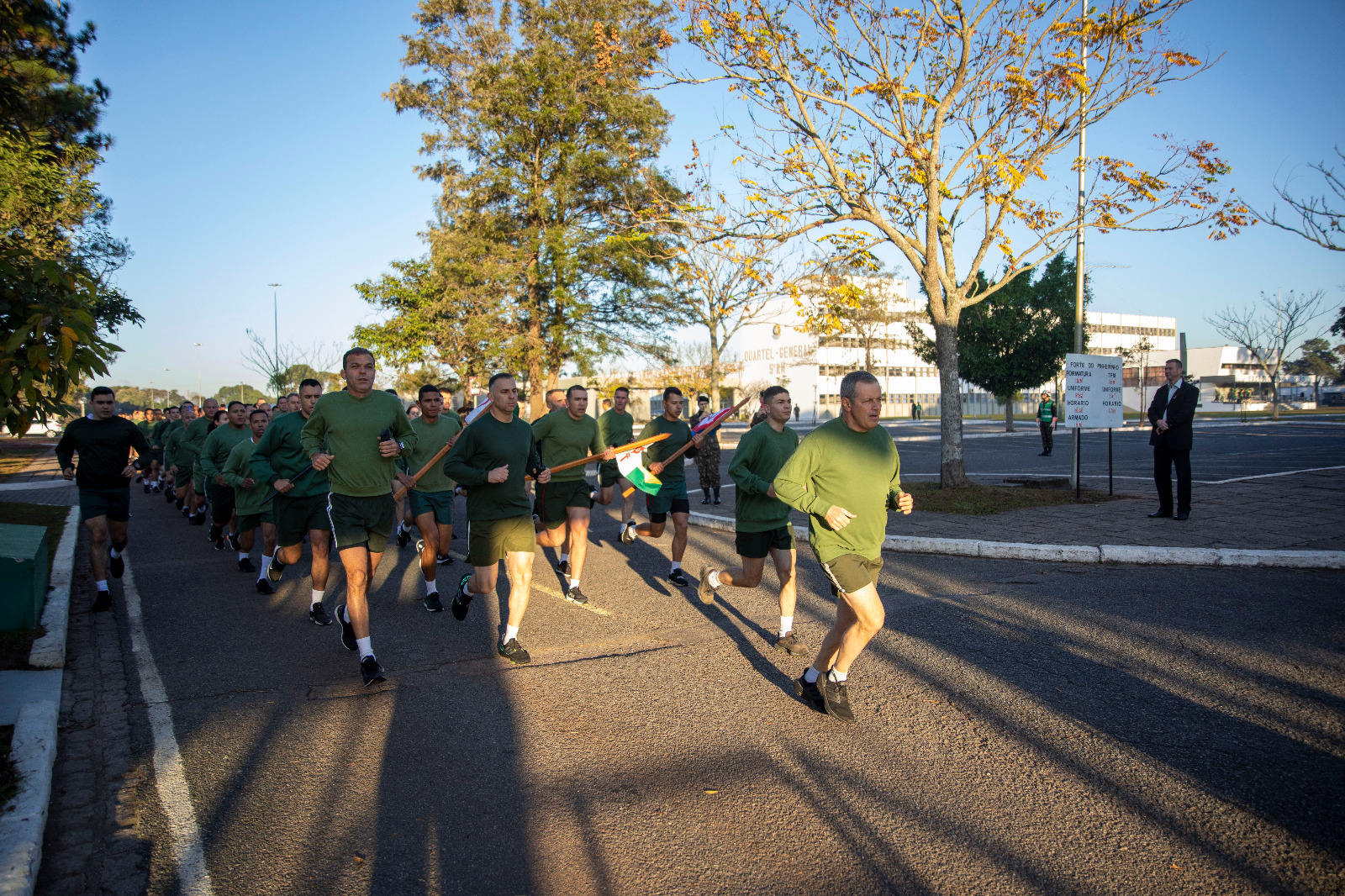 Na segunda-feira (26/6), o General Tomás iniciou a manhã conduzindo o treinamento físico militar do Forte do Pinheirinho. Na atividade, o Comandante fez uma corrida em forma, de aproximadamente 8 km, pelas trilhas do 5º Batalhão Logístico Blindado e pelas ruas da vizinhança. Em seguida, encerrou o treinamento, realizando flexões de braço com a tropa.