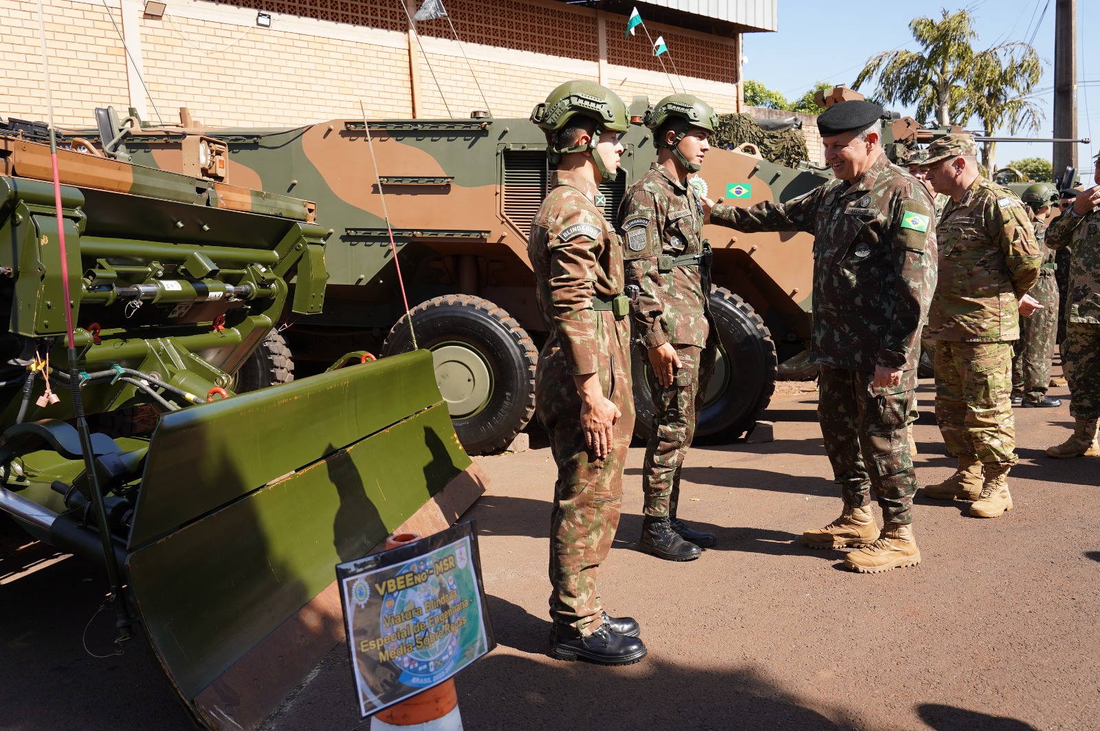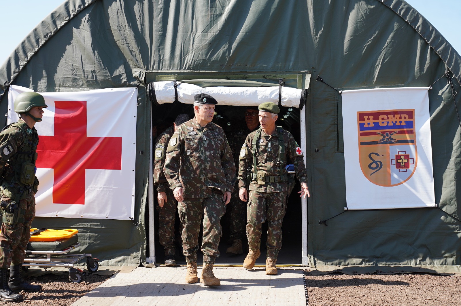 O Comandante do Exército Brasileiro também teve oportunidade de conversar com militares estrangeiros, inclusive durante visita ao Hospital de Campanha, operado em integração com militares dos Estados Unidos. No local, acompanhou uma demonstração da chegada de feridos em viatura blindada Guarani, equipada especialmente para o transporte de pacientes. Na parte interna do Hospital de Campanha, foi demonstrado o atendimento aos feridos, com curativos, medicações e até a simulação de uma cirurgia.