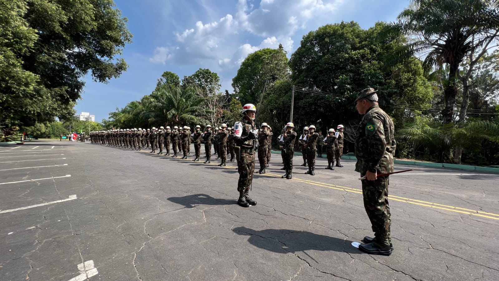 No Campo de parada Coronel Jorge Teixeira, cerca de 1.800 militares recepcionaram o Comandante do Exército, com equipamentos, aeronaves e viaturas, representando os mais de 20 mil homens e mulheres que trabalham incansavelmente na defesa da soberania nacional em toda a área de responsabilidade do CMA, que engloba os estados do Acre, Amazonas, Rondônia e Roraima.