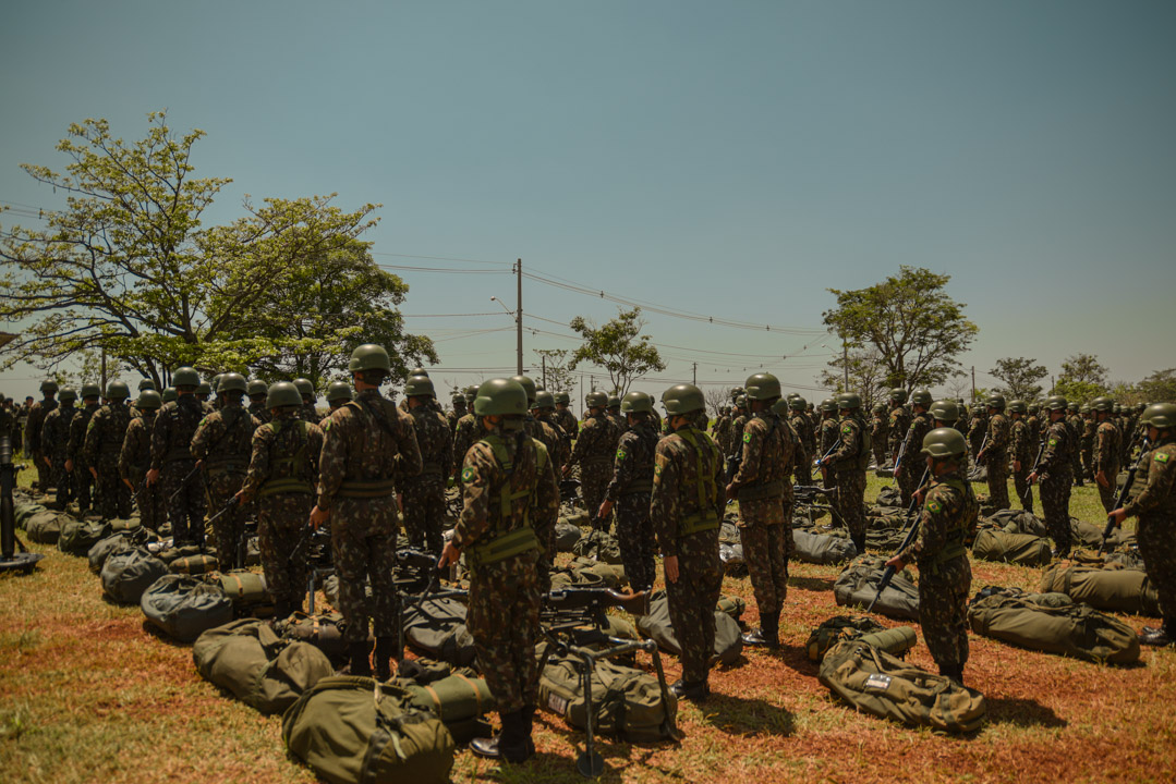 Na sequência, o General Tomás verificou os equipamentos, armamentos, viaturas, munições, suprimentos e demais materiais da Força Expedicionária Anhanguera, força de pronto emprego da 11ª Bda Inf Mec.