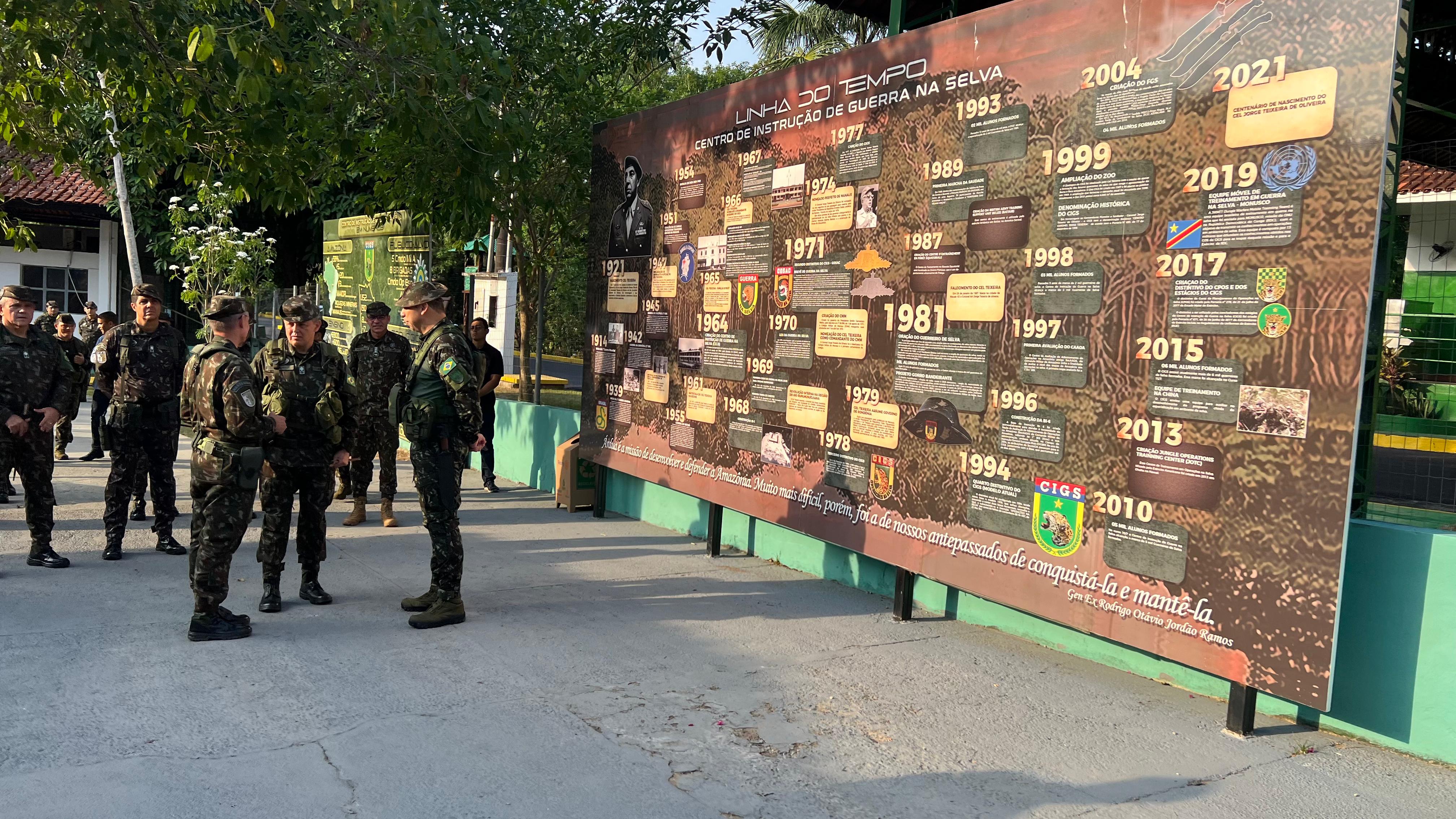Manaus (AM) – Nesta manhã de quarta-feira (20/09), o Comandante do Exército, General Tomás, avaliou a prontidão operacional, a eficiência administrativa e o cumprimento das metas estabelecidas para o Centro de Instrução de Guerra na Selva (CIGS), verificando instalações, equipamentos, instrução, prontidão logística, entre outros aspectos essenciais para a missão da Unidade. Esta visita reforça o compromisso contínuo do Exército Brasileiro com a formação de líderes e a preparação de seus recursos humanos para operar eficazmente em ambiente de selva.