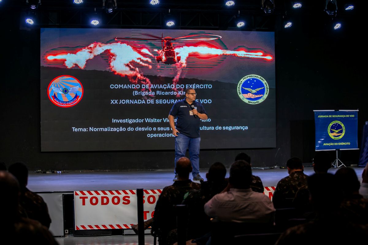 O General de Brigada Emerson Alexandre Januário, Comandante do CAvEx, abriu a programação. “Na aviação militar, cada ação precisa ser precisa. Cada tarefa precisa ser executado conforme o previsto, e cada integrante deve estar plenamente consciente da importância de seu papel”, enfatizou ele.