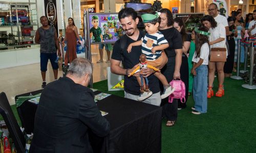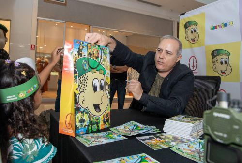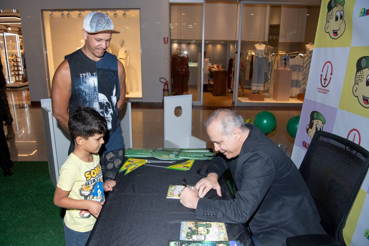 O evento foi especialmente movimentado no Dia das Crianças, com muitos pais e filhos em fila para fotos e autógrafos. Jânio, ex-soldado, destacou o valor do civismo, enquanto Sara, mãe de Isabela, ficou animada por conhecer o autor e receber uma revista autografada.