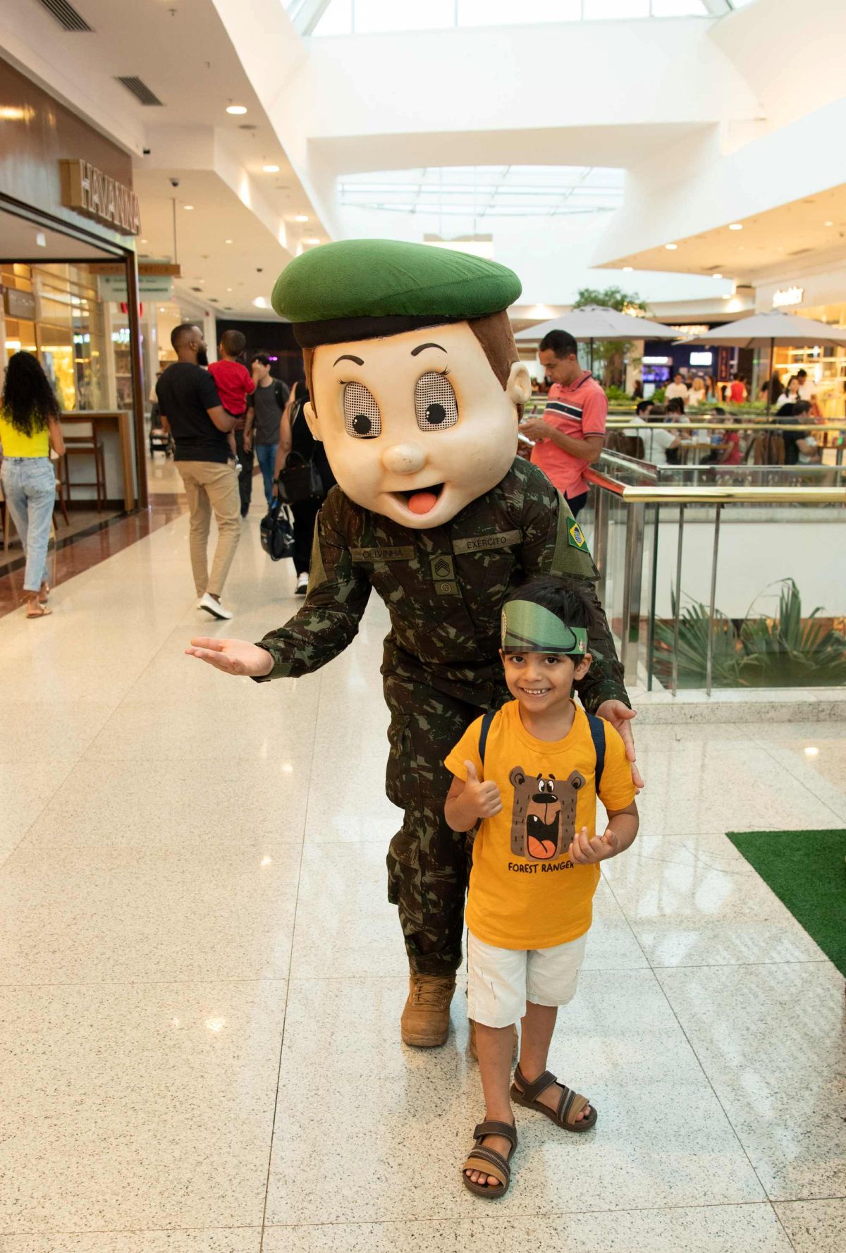 Brasília (DF) – Da sexta-feira, 10, até o Dia das Crianças, 12, uma multidão de crianças e jovens prestigiou, no Park Shopping, em Brasília, o estande em celebração aos 25 anos do Recrutinha, pesonagem criado pelo Exército Brasileiro para levar educação e civismo às novas gerações de forma acessível e divertida. Gratuita, a atração contou com a presença dos personagens Recrutinha e Olivinha, com distribuição de brindes e com uma exposição sobre o Exército com maquetes, painéis e motocicletas militares. O criador do Recrutinha, o cartunista Luiz Fernando Vieira, também marcou presença no local autografando o mais recente almanaque de aventuras do personagem.