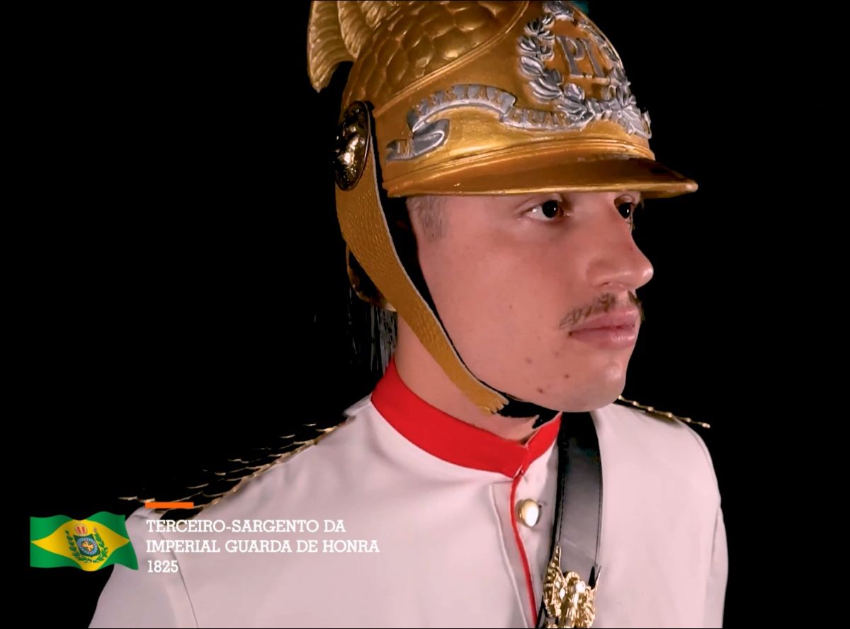 O Império do Brasil (1822, 1889) manteve a tradição do brilho e da ostentação. A Guarda Imperial, por exemplo, apresentava uniformes exuberantes, com calças brancas, túnicas de cores vibrantes e acessórios dourados. Ao mesmo tempo, surgiam as primeiras iniciativas de uniformização funcional, como os trajes dos batalhões de caçadores e artilheiros, que privilegiavam tecidos mais resistentes ao uso e ao clima tropical.