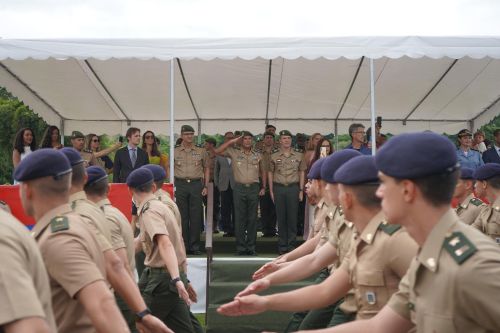 • A solenidade foi presidida por autoridades militares. Os cadetes iniciam a jornada de formação orientada pelos princípios da liderança, da disciplina e do compromisso com a defesa da Pátria.