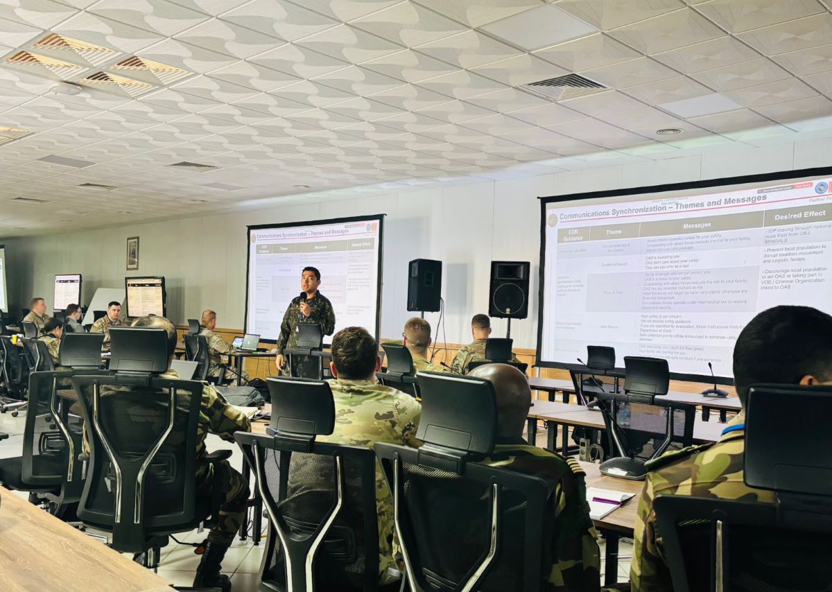 A delegação brasileira está composta por oficiais do Comando de Operações Terrestres (COTER), Comando Logístico (COLOG), Escola de Comando e Estado-Maior do Exército (ECEME) e Escola de Aperfeiçoamento de Oficiais (EsAO). Nossos oficiais integram as equipes de planejamento do Estado-Maior da Força Tarefa Conjunta Combinada, contribuindo na condução do Processo de Planejamento Conjunto Combinado e no desenvolvimento das atividades de preparo desta Força Tarefa Internacional.