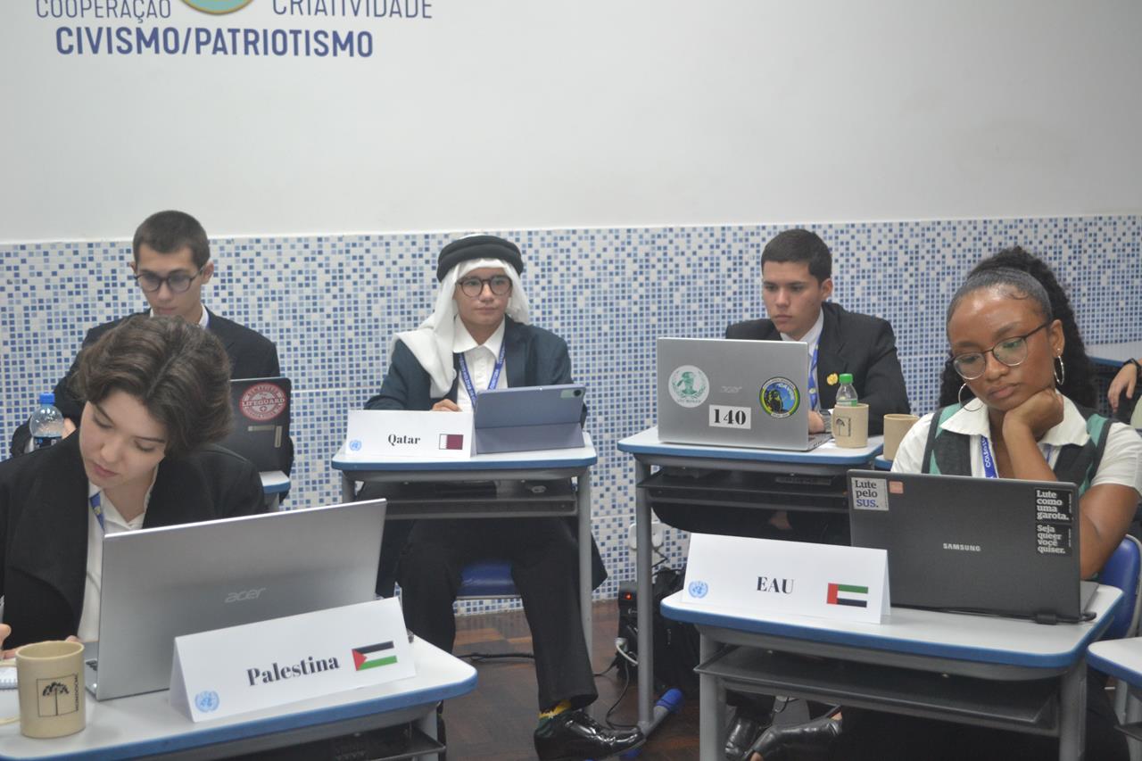 Entre a tarde de sexta-feira e a manhã de domingo ocorreu um total de sete sessões em cada Comitê, todas marcadas por intensos debates de ideias, cuja diversidade de opiniões e a profundidade dos argumentos enriqueceram as discussões. Contrapontos foram apresentados com clareza e convicção, estimulando a reflexão e o diálogo aberto. Em suas intervenções, os participantes demonstraram alto nível de preparação e conhecimento, conduzindo arguições que desafiavam e ampliavam as perspectivas de todos. Esse ambiente dinâmico e colaborativo evidenciou a importância do pensamento crítico e do respeito às diferentes visões, tornando o encontro um verdadeiro exercício de cidadania global e de aprendizado mútuo. Tudo sempre acompanhado muito de perto pelos estudantes que simularam a Agência de Comunicação, encarregada de cobrir os principais acontecimentos e abastecer as mídias sociais do evento.