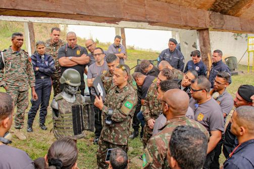 Durante a instrução, os participantes acompanharam demonstrações práticas que evidenciaram os efeitos de disparos de armas de fogo de diferentes calibres sobre variados tipos de anteparo, a análise da trajetória de projéteis em gelatina balística, a eficiência de distintos níveis de proteção balística e a produção e coleta de padrões para confronto balístico.