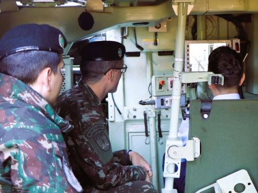 • Essa visita anual é um prêmio para os alunos do Curso de Estado-Maior colombiano. Os militares tiraram dúvidas sobre as características dos blindados e verificaram armamentos.