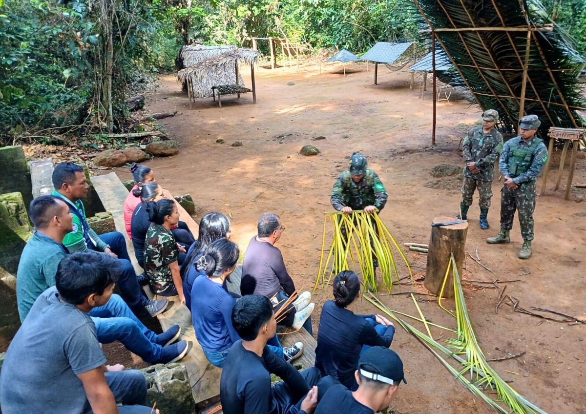Ademais, os participantes tiveram a oportunidade de realizar atividades na Base de Instrução Nr 1, integrados aos estagiários do Estágio de Adaptação à Selva, como obtenção de água e fogo, alimentos de origem animal e vegetal, ofidismo e abrigos improvisados, culminando com pernoite em ambiente de selva.