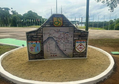 • O monumento, que inclui um distintivo da FEB e símbolos militares, homenageia os “Pracinhas” que lutaram pela liberdade.