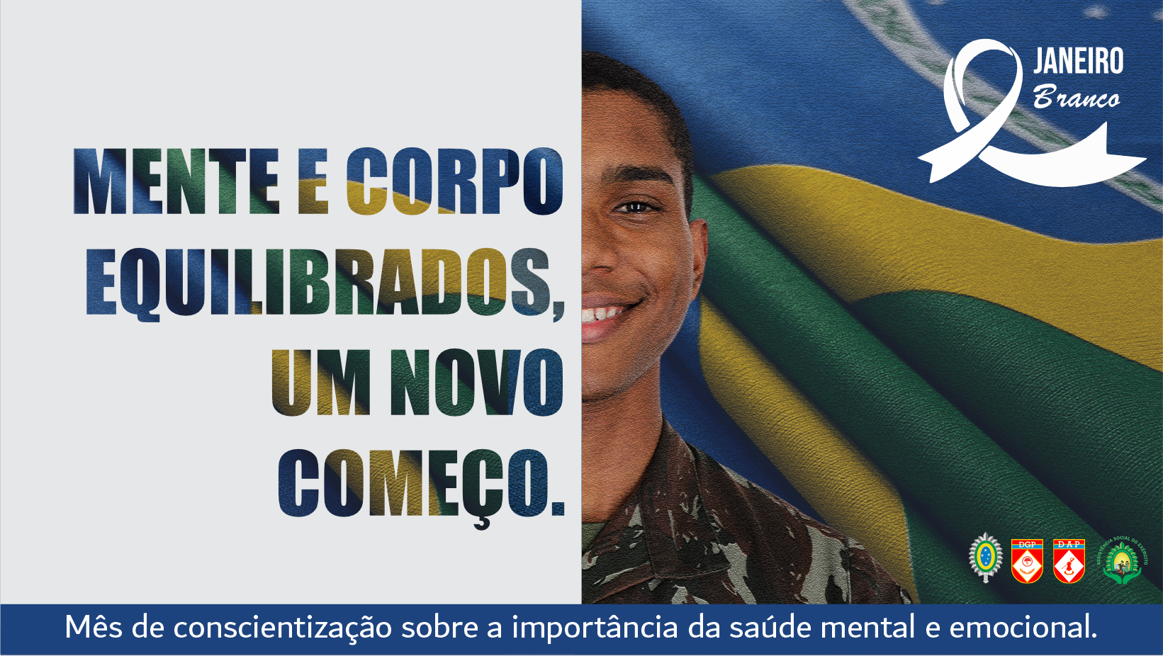 Brasília (DF) – O Sistema de Assistência Social do Exército lançou a campanha anual Janeiro Branco, com o lema "Vou me cuidar de janeiro a janeiro: mente sã em corpo são". Para guiar as Seções de Assistência Social dos quartéis em todo o Brasil, foi produzido um Caderno de Orientações, fornecendo diretrizes e sugestões práticas sobre como abordar a saúde mental com militares e civis. O objetivo é chamar a atenção, informar e sensibilizar a Família Militar sobre a importância do bem-estar mental e emocional.