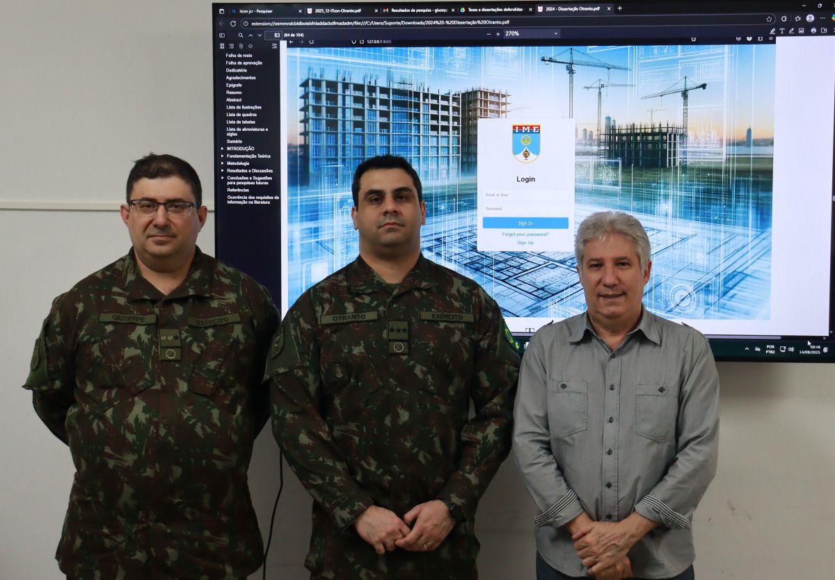 A pesquisa intitulada openBIM-FM Artifact: Bidirectional Solution for Efficient Asset Management tem origem na dissertação de mestrado do Capitão Otranto, desenvolvida no Curso de Pós-Graduação em Engenharia de Defesa do IME. Com o tema Soluções para o Aprimoramento do Uso do BIM no Apoio à Gestão de Ativos por meio de Padrões e Protocolos não Proprietários, a proposta se destacou pela inovação e aplicabilidade, competindo com trabalhos acadêmicos de alto nível produzidos em instituições de diversos países.