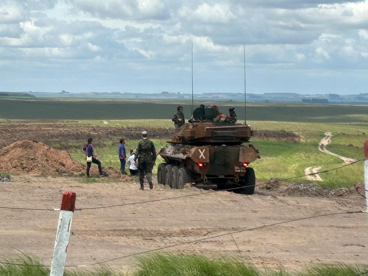 Batalhão de fronteira recebe Guarani e faz testes com o blindado em lago