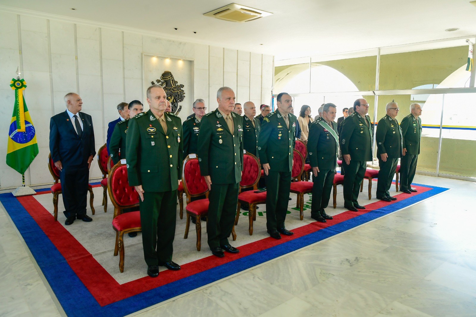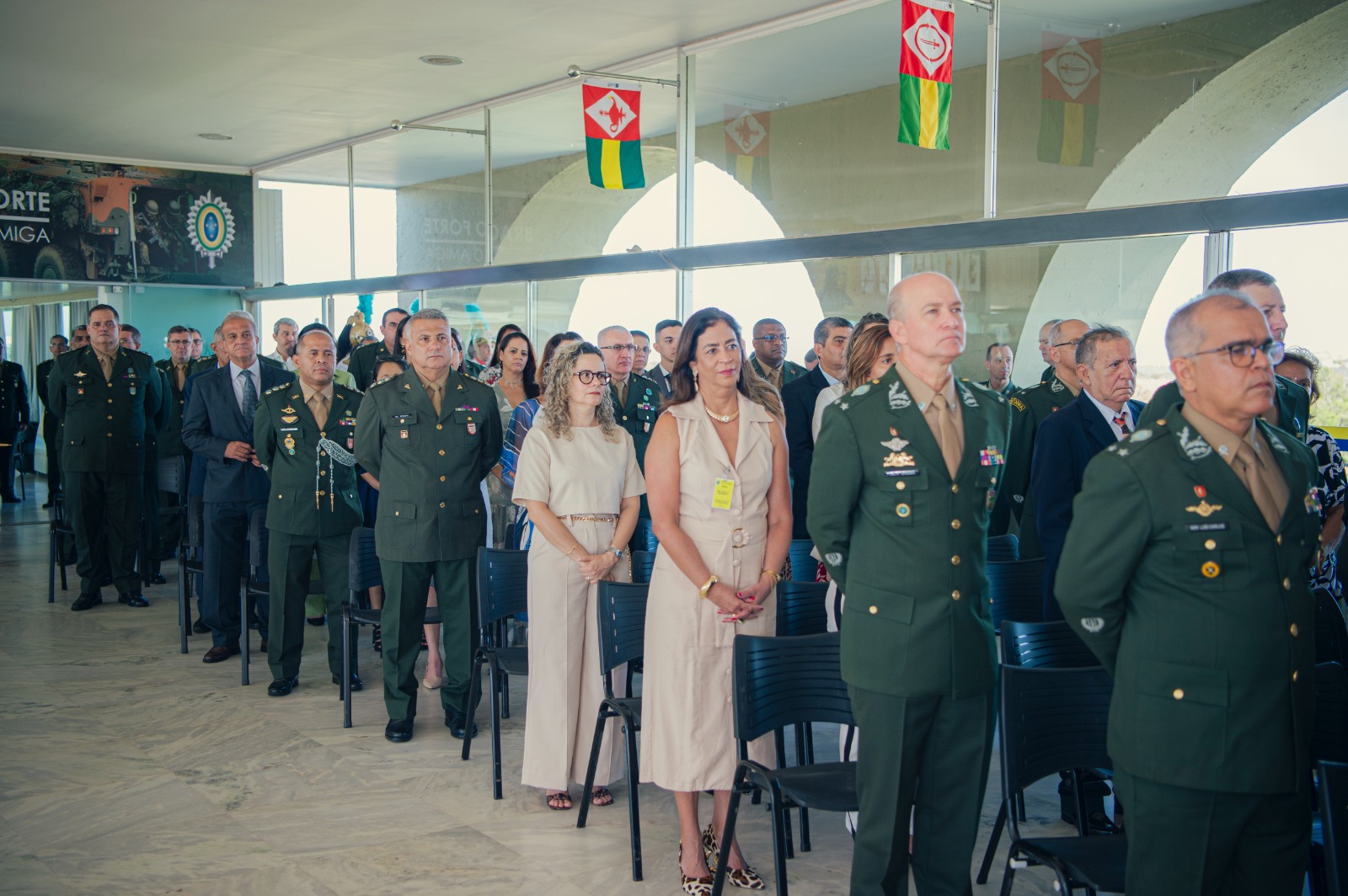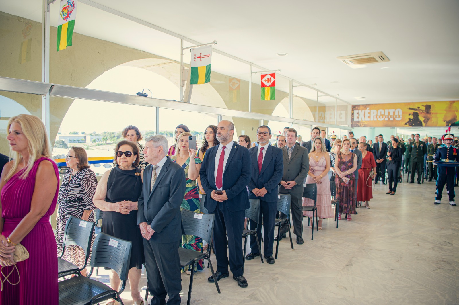 O Comandante da Força, General de Exército Tomás Miguel Miné Ribeiro Paiva, presidiu a cerimônia, que contou com as presenças de integrantes do Alto-Comando do Exército de hoje e de ontem; de oficiais-generais; do Arcebispo do Ordinariado Militar do Brasil, Dom Marcony Vinícius Ferreira; de integrantes dos Poderes Executivo, Legislativo e Judiciário; de representantes de funções essenciais da Justiça; além de outras autoridades civis e militares.