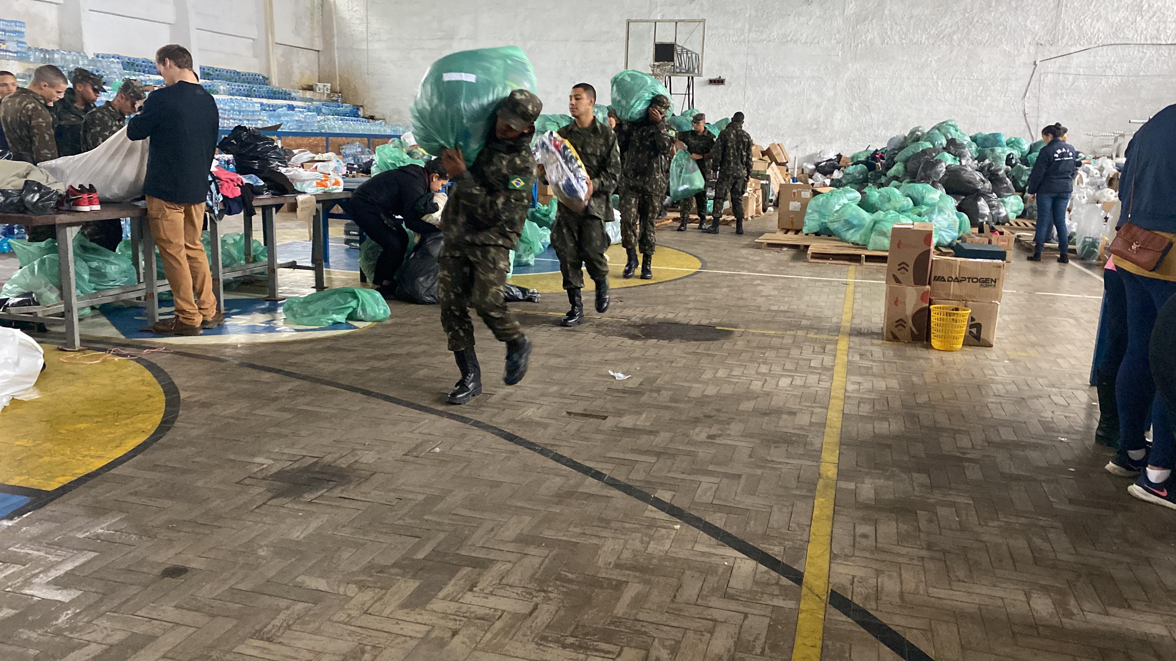 Na região de Guaíba e de Eldorado do Sul, militares da 3ª Brigada de Cavalaria Mecanizada atuam em coordenação com a Defesa Civil no resgate em áreas de risco e remoção de feridos para o Hospital de Campanha montado na região. O Exército atua ao lado das autoridades municipais para prover o suporte logístico à administração dos abrigos que recebem as vítimas da enchente.