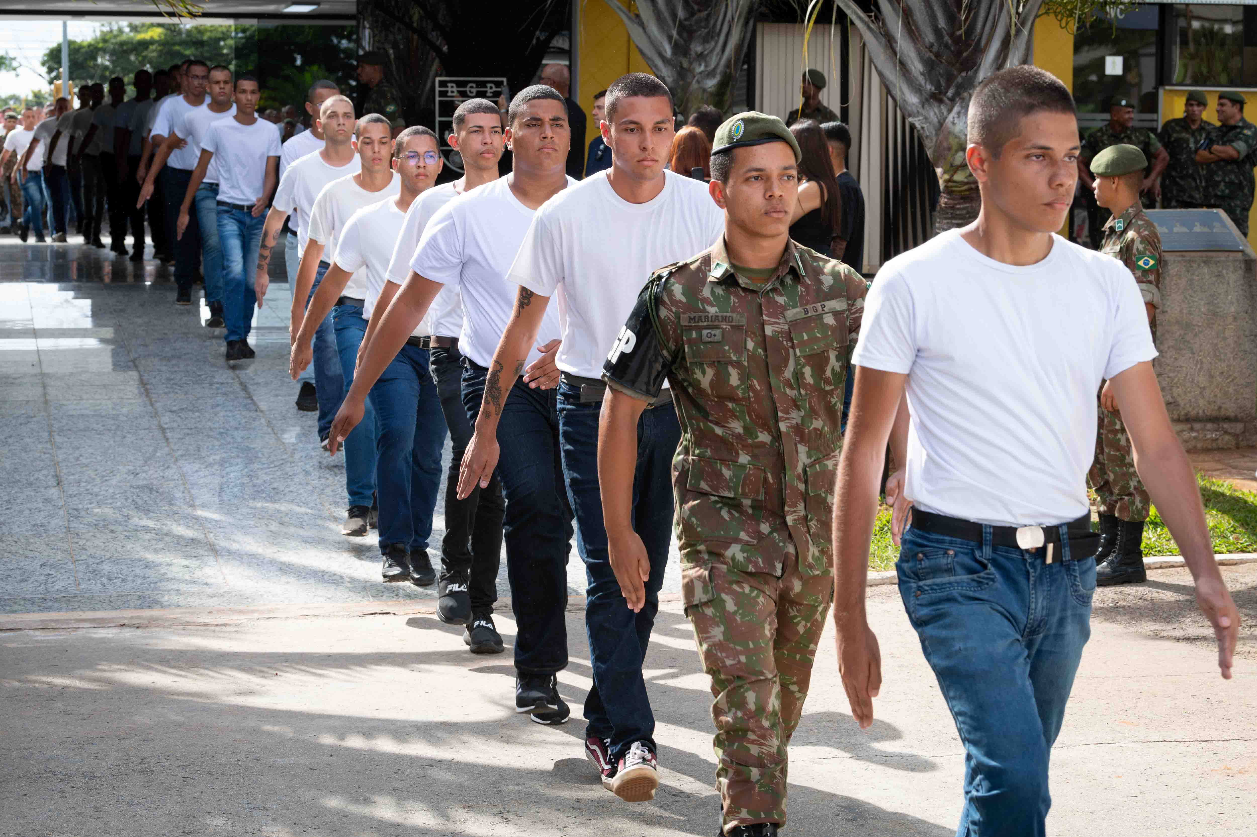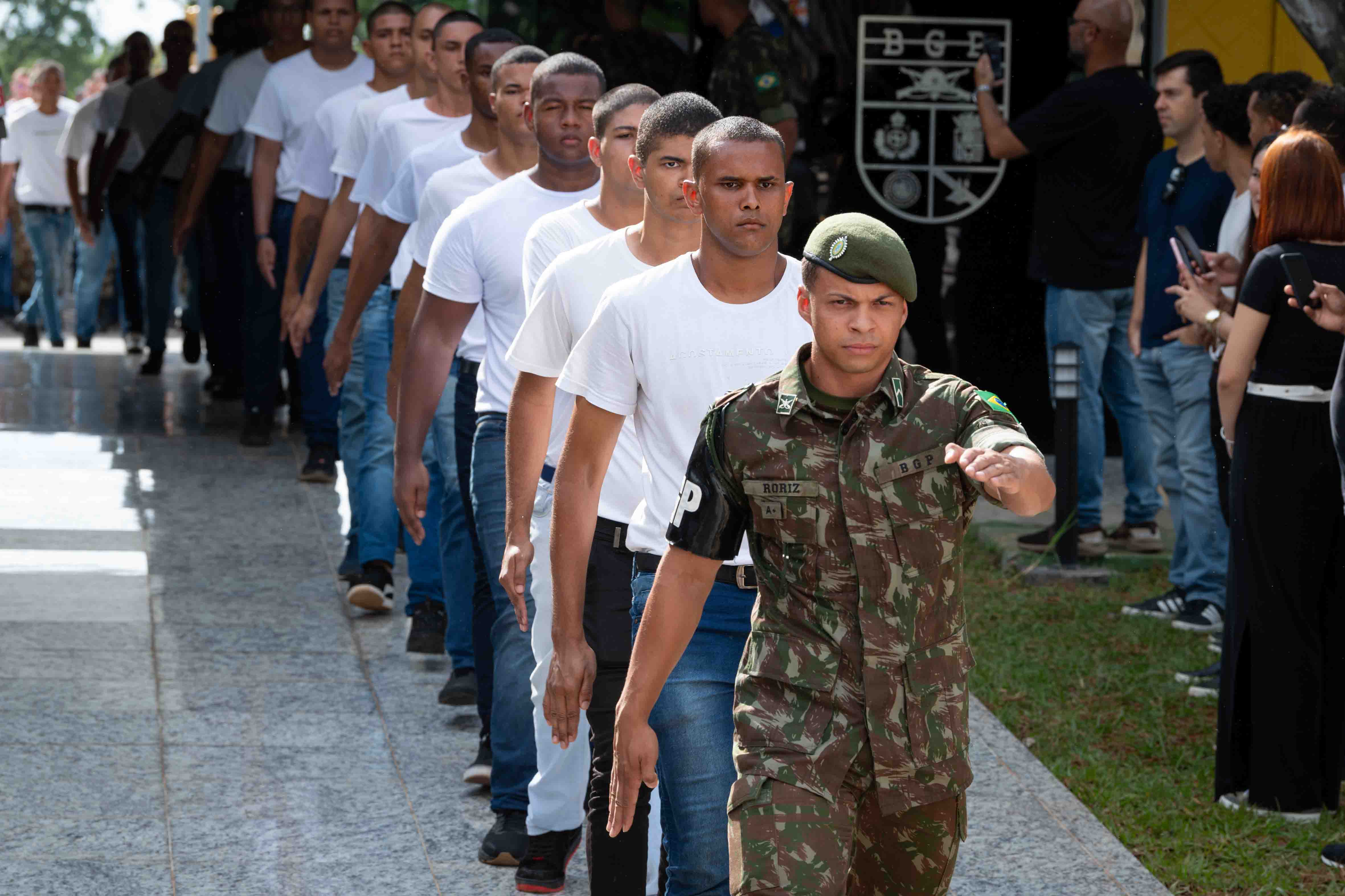 Diante de suas famílias, centenas de jovens entraram pelos portões do quartel como civis – vestindo calça jeans e camiseta branca – e surgiram pouco depois no pátio do Batalhão usando, pela primeira vez, a farda camuflada do Exército. Nas palavras dirigidas aos novos recrutas, o General Tomás destacou a relevância do momento para a Força. “Vocês estão representando os mais de 55 mil conscritos que estão incorporando hoje em todo o Exército. É uma alegria para nós receber vocês, que foram selecionados dentre mais de um milhão de jovens que se apresentam todos os anos para o Serviço Militar”.