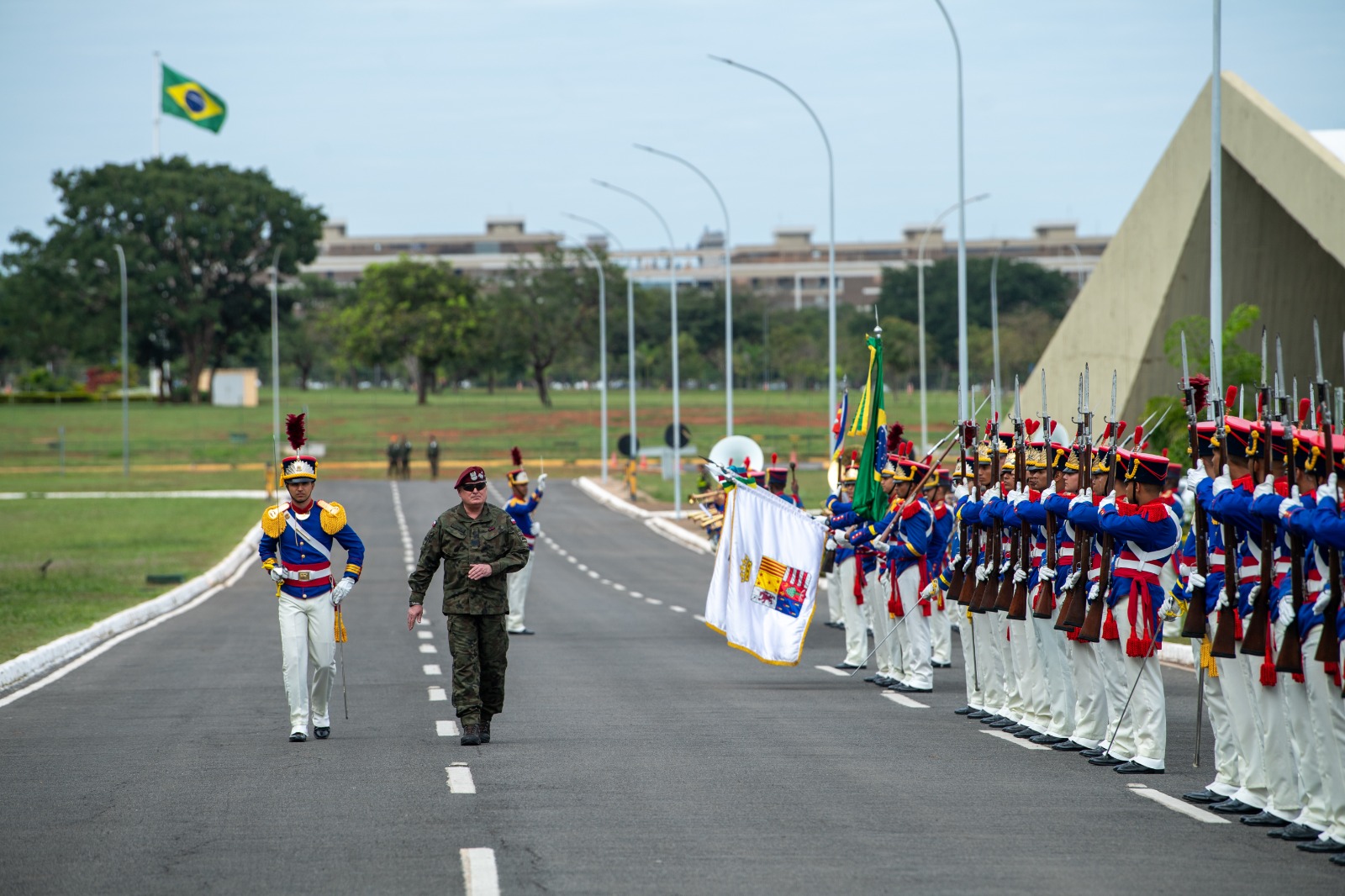 O oficial-general da nação amiga foi recepcionado com as honras militares previstas para o cargo que ocupa. A Guarda de Honra foi composta por três pelotões de granadeiros e a banda de música do Batalhão da Guarda Presidencial, trajando uniformes históricos. A Bateria Caiena, do 32º Grupo de Artilharia de Campanha – Batalhão Dom Pedro I, executou 19 tiros de salva, enquanto uma ala dos Dragões da Independência, do 1º Regimento de Cavalaria de Guardas, recepcionou a autoridade visitante na entrada do QGEx.