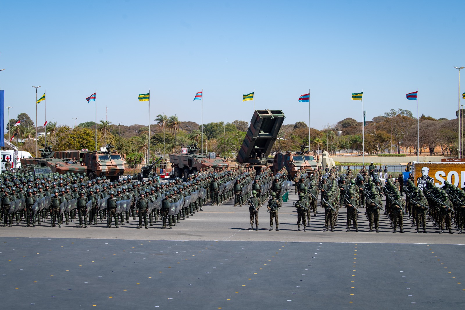O evento contará com as presenças de autoridades dos três Poderes da República, oficiais-generais das Forças Armadas, convidados civis e militares, além de alunos de escolas da rede pública do Distrito Federal. A programação inclui a entrega de condecorações, homenagem aos 80 anos da vitória da Força Expedicionária Brasileira na 2ª Guerra Mundial, demonstração de ordem unida sem comando com evoluções de militares no terreno, finalizando com o desfile da tropa a pé, motorizada e hipomóvel.