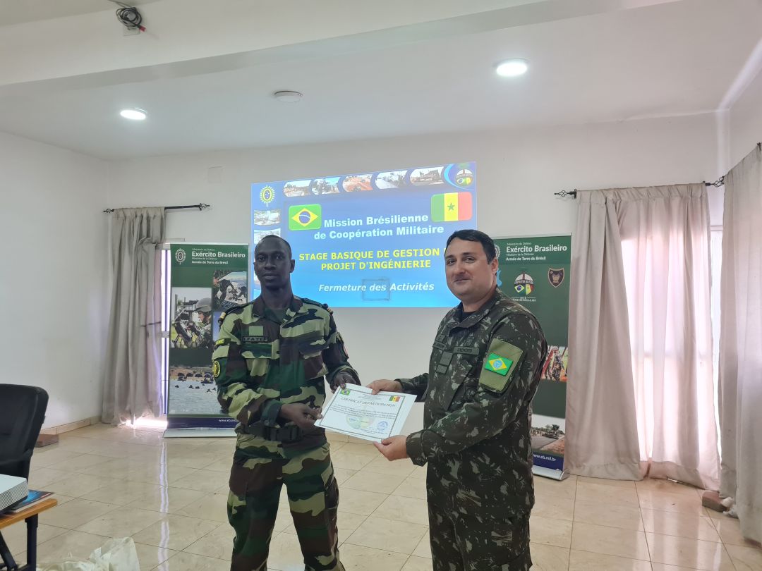 Dacar (Senegal) – A Missão Brasileira de Cooperação em Engenharia Militar junto ao Exército Senegalês (MBCEM) contribuiu para o aperfeiçoamento de 10 militares das Forças Armadas do Senegal, com a realização do Estágio Básico de Gerenciamento de Projetos de Engenharia. No Senegal, as atividades de engenharia são conduzidas e coordenadas pela Direção de Engenharia e Infraestrutura das Forças Armadas do Senegal (DIRGEN, sigla em francês), estrutura do Exército que atua no nível do Estado-Maior das Forças Armadas Senegalesas.