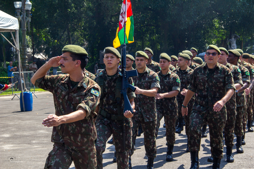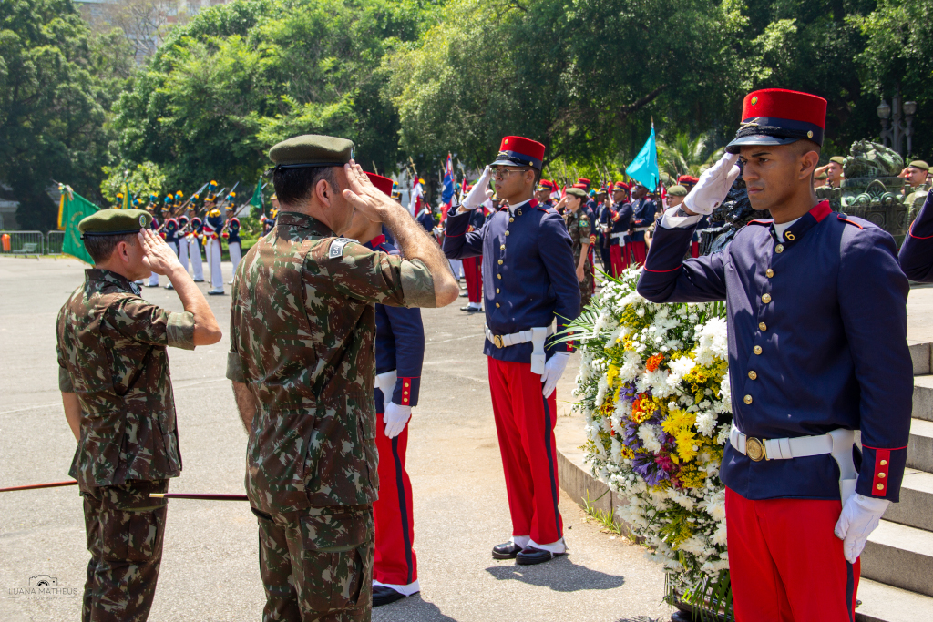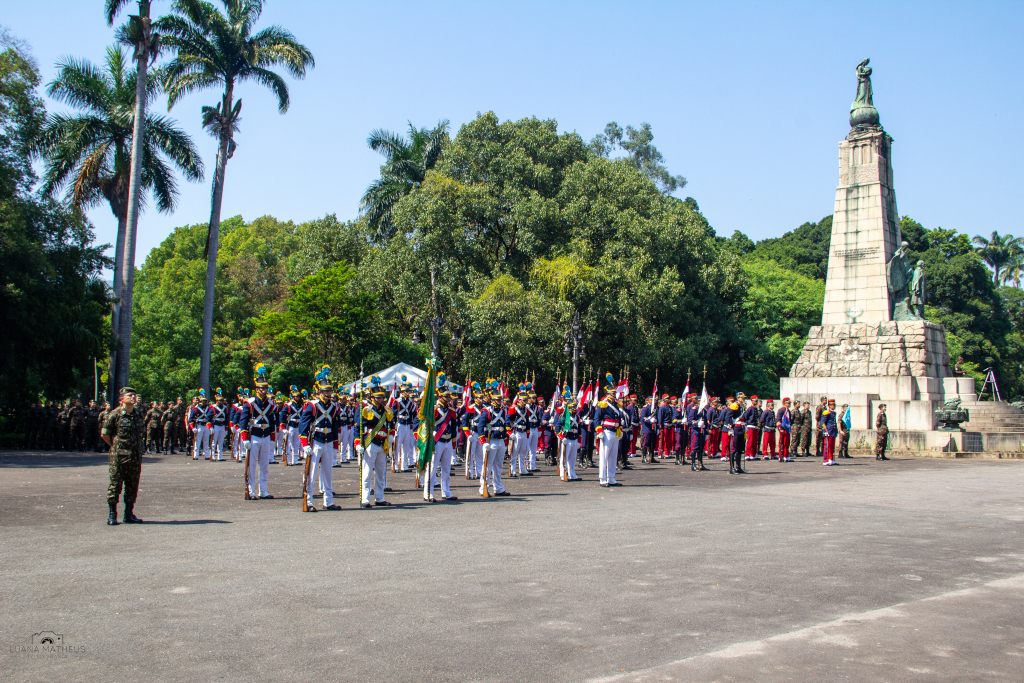 Rio de Janeiro (RJ) – Na manhã do dia 14 de novembro, o Departamento de Educação e Cultura do Exército (DECEx) realizou formatura alusiva aos 134 anos da Proclamação da República, no Campo de Santana, no Rio de Janeiro. A solenidade foi presidida pelo Chefe do Departamento de Educação e Cultura do Exército (DECEx), General de Exército Richard Fernandez Nunes, acompanhado de Oficiais Generais do DECEx, do Comando Militar do Leste, do Departamento de Ciência e Tecnologia, de autoridades civis e militares. A solenidade teve como propósito rememorar o fato histórico protagonizado pelo Marechal Deodoro da Fonseca, em 15 de novembro de 1889.