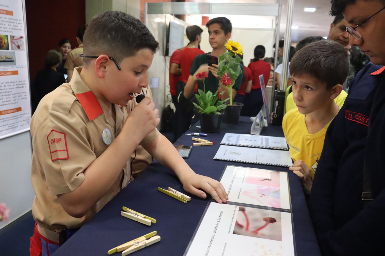 Este ano, o tema central da Feira de Ciências foi “Novas rotas tecnológicas a serviço da proteção do planeta nas agendas econômica e socioambiental”. Os convidados prestigiaram os 33 trabalhos desenvolvidos por alunos de diferentes regiões do Brasil. O Núcleo de Apoio EaD de Tefé (AM) estreou no evento, apresentando o trabalho “Chafé Tefé”, um chá feito com caroços de açaí.