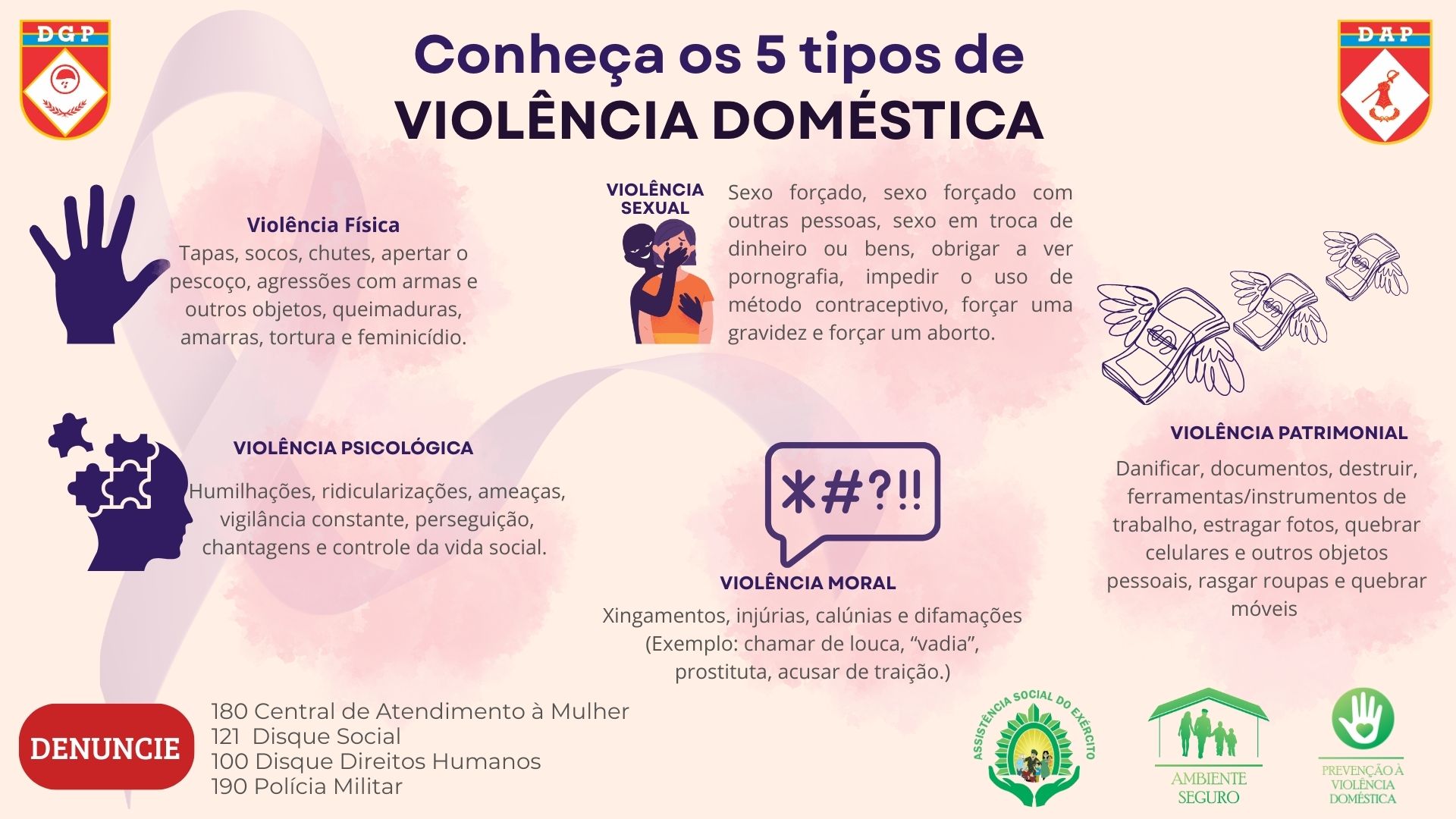 O Exército Brasileiro, por intermédio da Diretoria de Assistência ao Pessoal (DAP), conduz ações permanentes de caráter socioassistencial voltadas à prevenção da violência doméstica no âmbito da Força Terrestre.