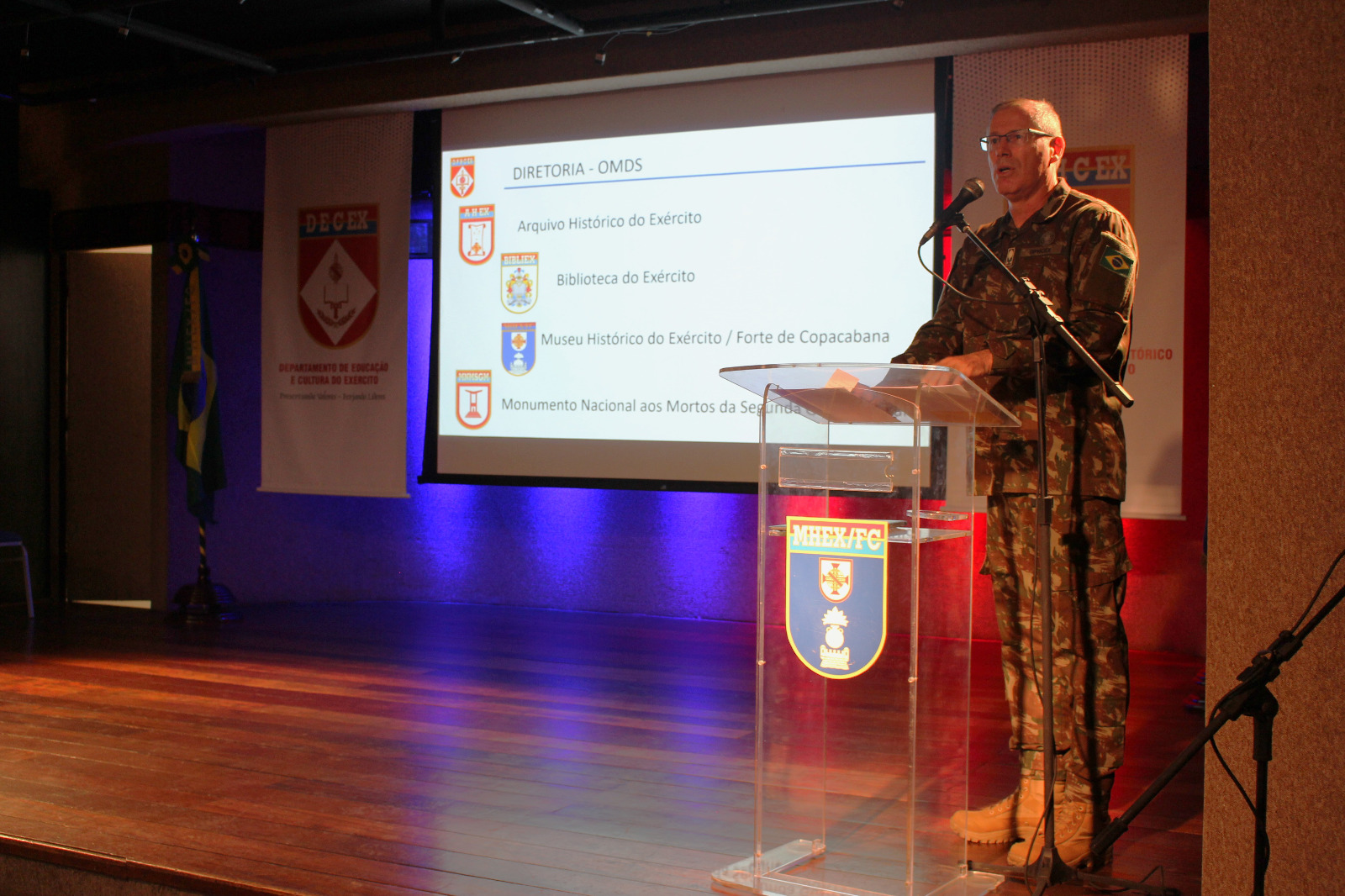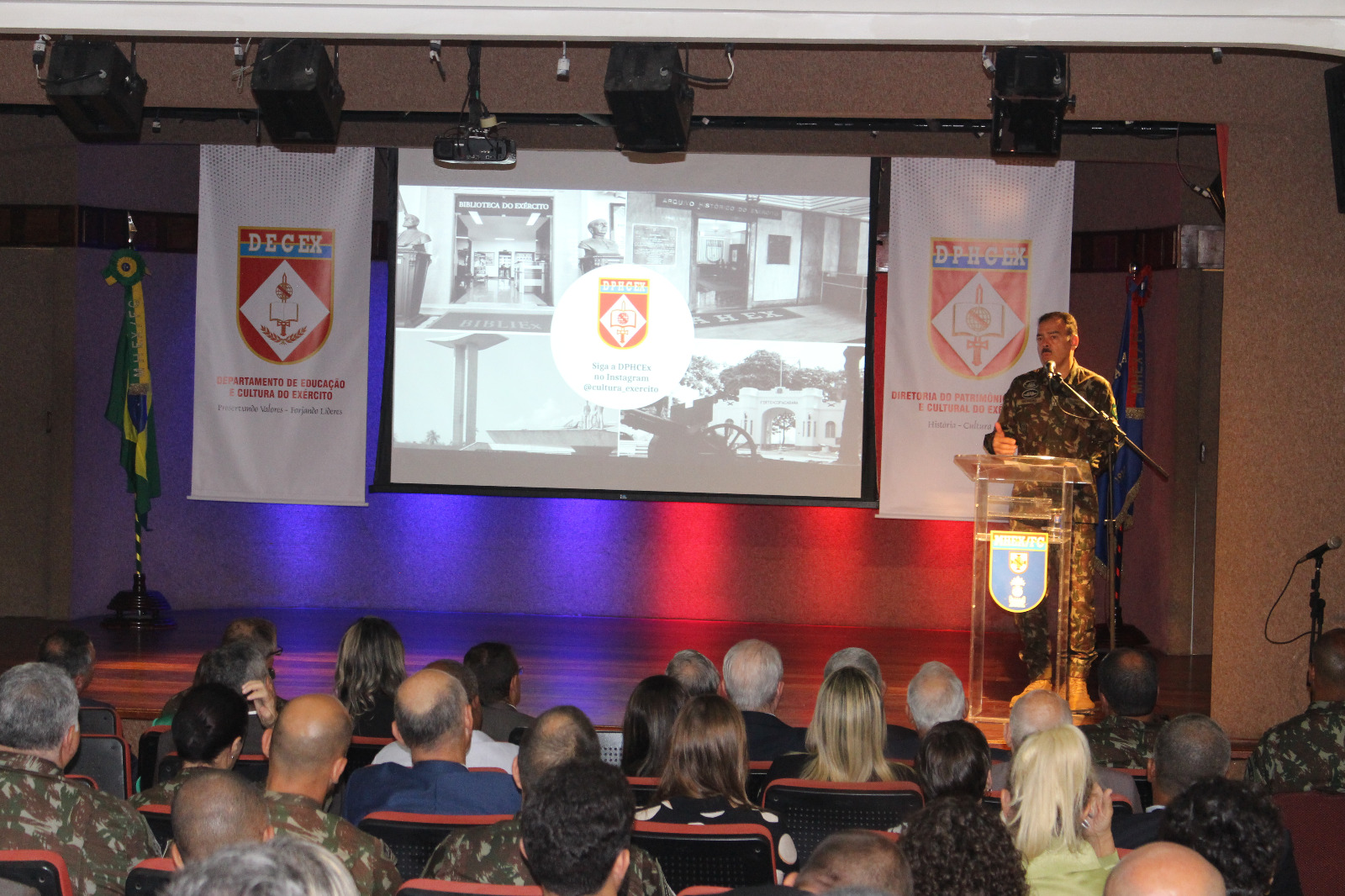 O Chefe do Departamento de Educação e Cultura do Exército, General Richard Fernandez Nunes, abriu o evento e enfatizou o papel da Diretoria. “A DPHCEx é uma Diretoria do nosso Departamento que tem por missão preservar os valores, divulgá-los e permitir que nós os cultuemos”, declarou.