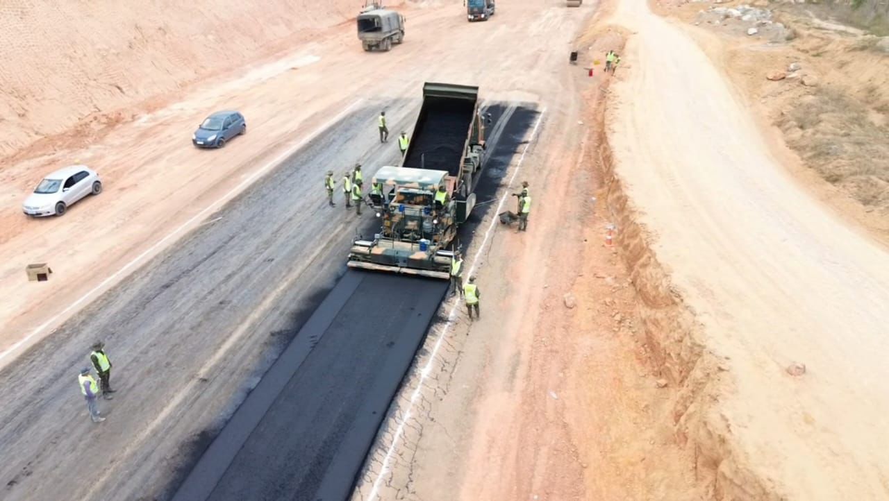 A tropa de Engenharia de Construção está realizando ensaios de laboratórios de solos, ensaios de preparação de material para asfalto, construção de pátio para usina, terraplanagem, compactação de solos, lançamento de bueiros e a pavimentação asfáltica. Ao todo, 150 militares e 120 equipamentos e máquinas de engenharia estão desdobrados no terreno.