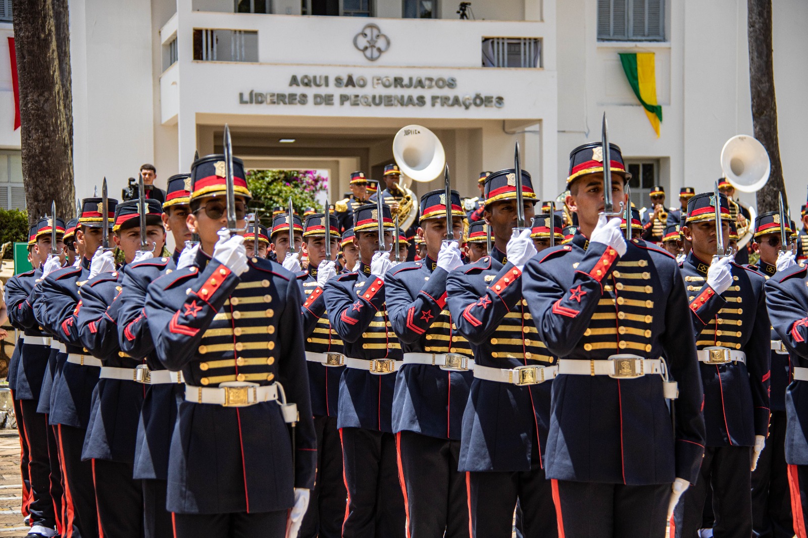 Para o recebimento do Sabre, a Turma 130 anos da Criação da Escola de Sargentos trajou o 1º Uniforme Escolar, réplica do uniforme usado na antiga Escola de Sargentos da Fortaleza de São João, a primeira unidade sistematizada de formação do Sargento Combatente do Exército Brasileiro em 1894.