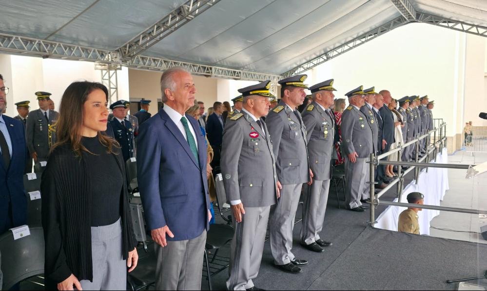 Resende (RJ) – A Academia Militar das Agulhas Negras (AMAN) realizou, neste sábado (16), a tradicional cerimônia de entrega do Espadim aos cadetes do 1º ano – Turma “General Leônidas Pires Gonçalves”. A solenidade foi presidida pelo Ministro da Defesa, José Mucio Monteiro Filho, acompanhado pelo Comandante do Exército, General de Exército Tomás Miguel Miné Ribeiro Paiva, e pela Governadora de Pernambuco, Raquel Teixeira Lyra Lucena. O evento contou ainda com a presença de oficiais-generais integrantes do Alto-Comando do Exército de ontem e de hoje, autoridades civis e militares, reafirmando o valor das tradições e da formação militar no Exército Brasileiro.