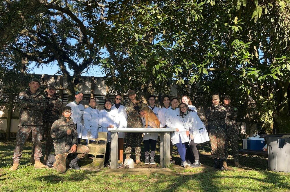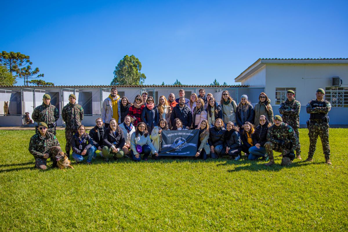 Ainda como parte do convênio, estudantes do primeiro período do curso de Medicina Veterinária visitaram o canil da Seção de Cães de Guerra da 5ª Cia PE, no final de maio. Eles assistiram a uma palestra sobre o trabalho desenvolvido com os cães de guerra da Polícia do Exército. Em seguida, conheceram os materiais usados no adestramento e cuidado com os cães, nas instalações do canil. Depois, assistiram a uma demonstração dos cães com adestramentos específicos de obediência, faro e proteção.