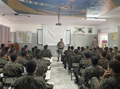 O Capitão também abordou temas como o policiamento preventivo, a rotina operacional da Polícia Militar, as diferentes formas de ingresso na Corporação, a estrutura organizacional do 3º BPM e o papel essencial da PM na manutenção da ordem pública. A palestra teve forte impacto motivacional, esclarecendo dúvidas sobre a carreira policial e reforçando os laços entre o Exército Brasileiro e a Polícia Militar.