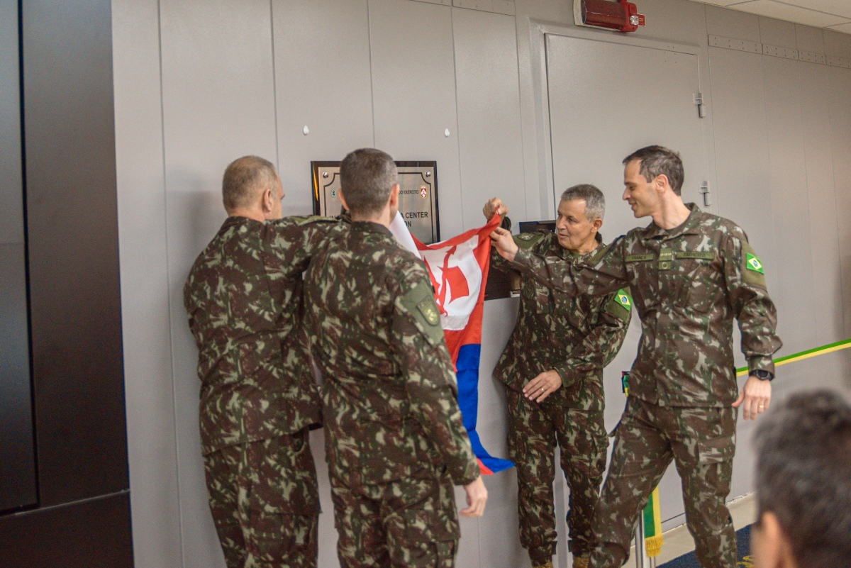 A fita inaugural na porta da sala segura foi cortada pelo General Tomás, pelo General Furlan, pelo Coronel José Eduardo França, que esteve à frente do 3º CTA de janeiro de 2023 a janeiro de 2025, e pelo Tenente-Coronel Jeronymo Mota Alves de Carvalho, atual Chefe do 3º CTA.
