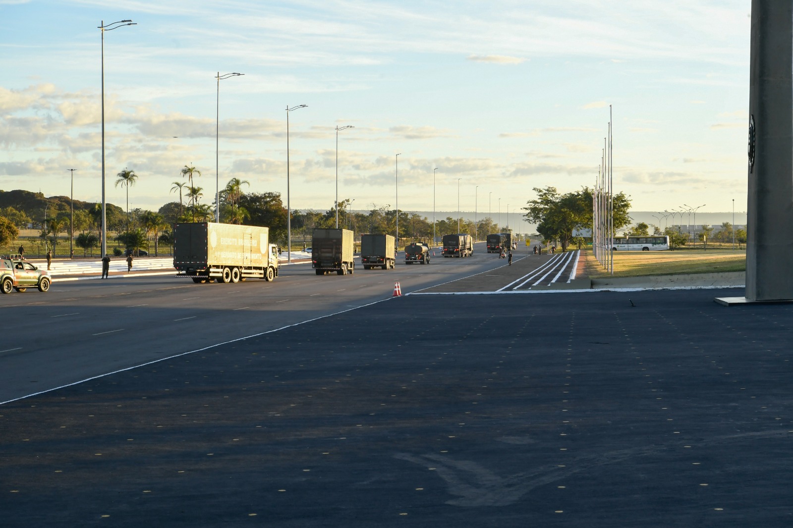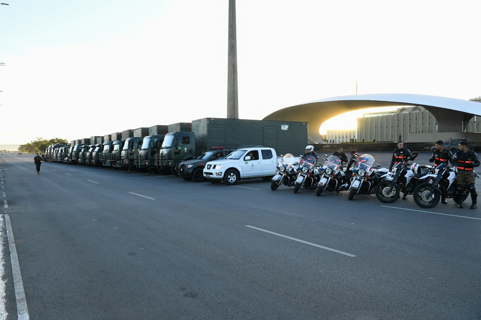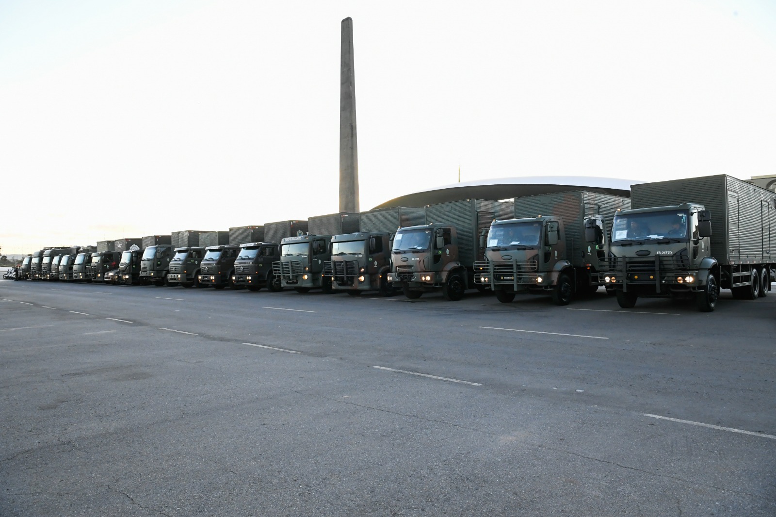 Brasília (DF) – Mais um comboio com 22 viaturas do Exército Brasileiro partiu de Brasília na manhã desta sexta-feira, 24 de maio, com destino ao Rio Grande do Sul. O Comandante do Exército, General Tomás Miguel Miné Ribeiro Paiva, acompanhou a saída da frota.