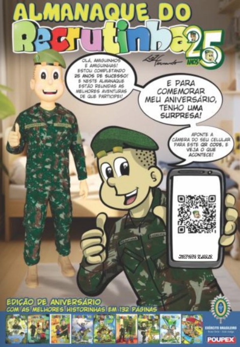 Brasília (DF) – O Exército Brasileiro celebra os 25 anos do Recrutinha com uma campanha interativa que utiliza tecnologia de realidade aumentada para aproximar ainda mais a figura do personagem do público infanto-juvenil. A iniciativa, desenvolvida pelo Centro de Comunicação Social do Exército (CCOMSEx), permite que as crianças interajam de maneira inédita com o personagem.
