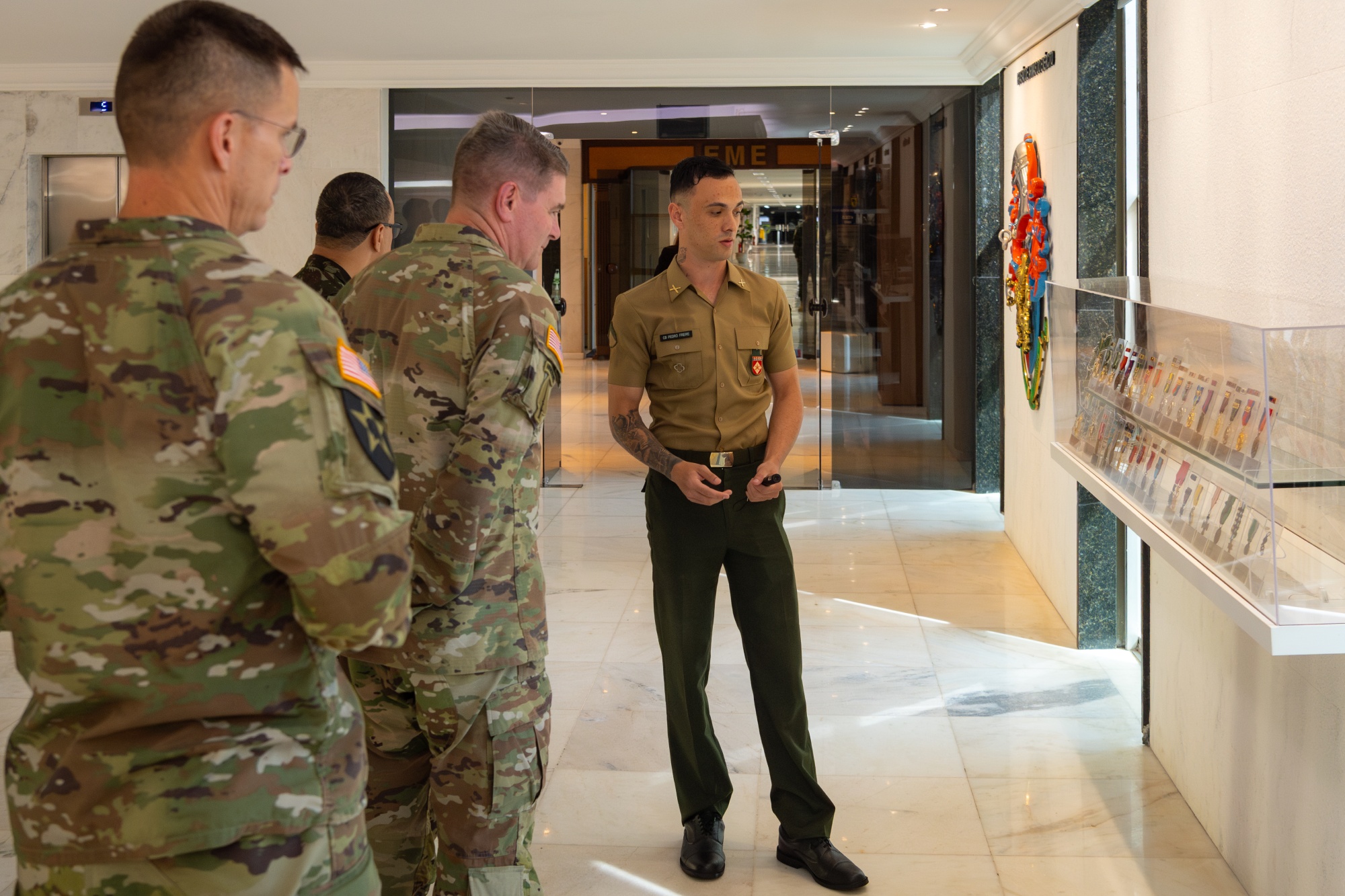 Ao longo da semana, a comitiva americana também conheceu parte da história e dos símbolos do Exército Brasileiro no Salão Guararapes, localizado no Quartel-General do Exército. Os visitantes conheceram ainda a exposição de materiais no Centro de Doutrina do Exército; e prestigiaram apresentações do Comando de Operações Terrestres, incluindo apreciações sobre a Operação Core.