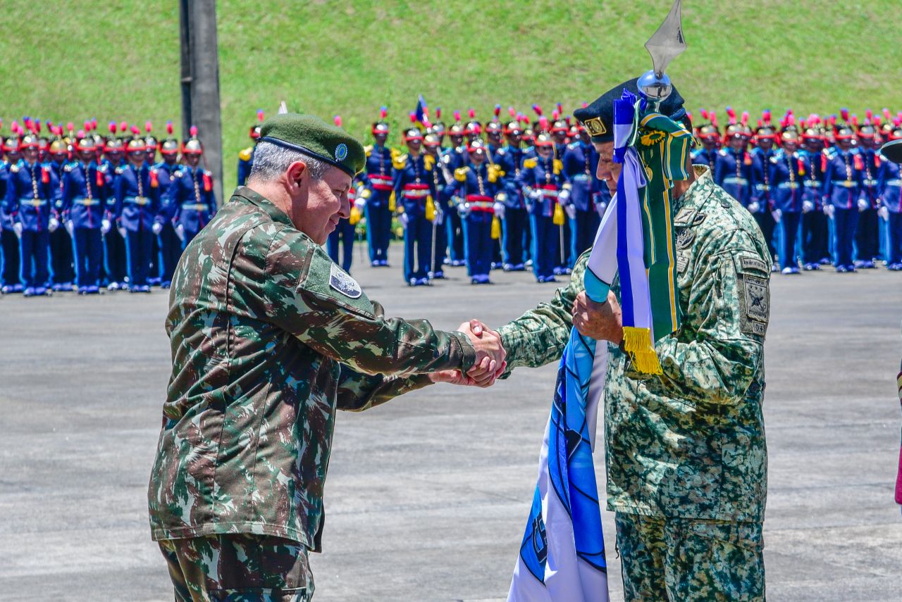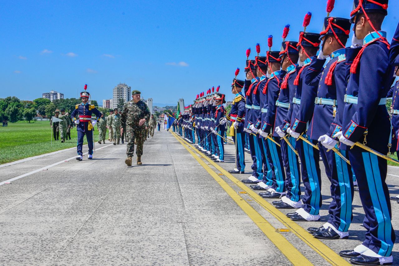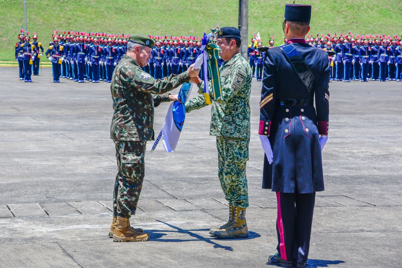 Resende (RJ) – Nesta quarta-feira, 8, em cerimônia realizada na Academia Militar das Agulhas Negras (AMAN), o Exército Brasileiro transmitiu a presidência da Conferência dos Exércitos Americanos (CEA) para o Exército do México. A solenidade foi conduzida pelo Comandante do Exército Brasileiro, General Tomás, que ocupava o cargo de presidente da CEA. Na ocasião, diante de diversos participantes da Conferência e de tropa formada pelos cadetes da Academia, o Comandante passou o comando do órgão internacional para o General de Divisão Cortez, Chefe do Estado-Maior e representante do Comandante do Exército Mexicano.