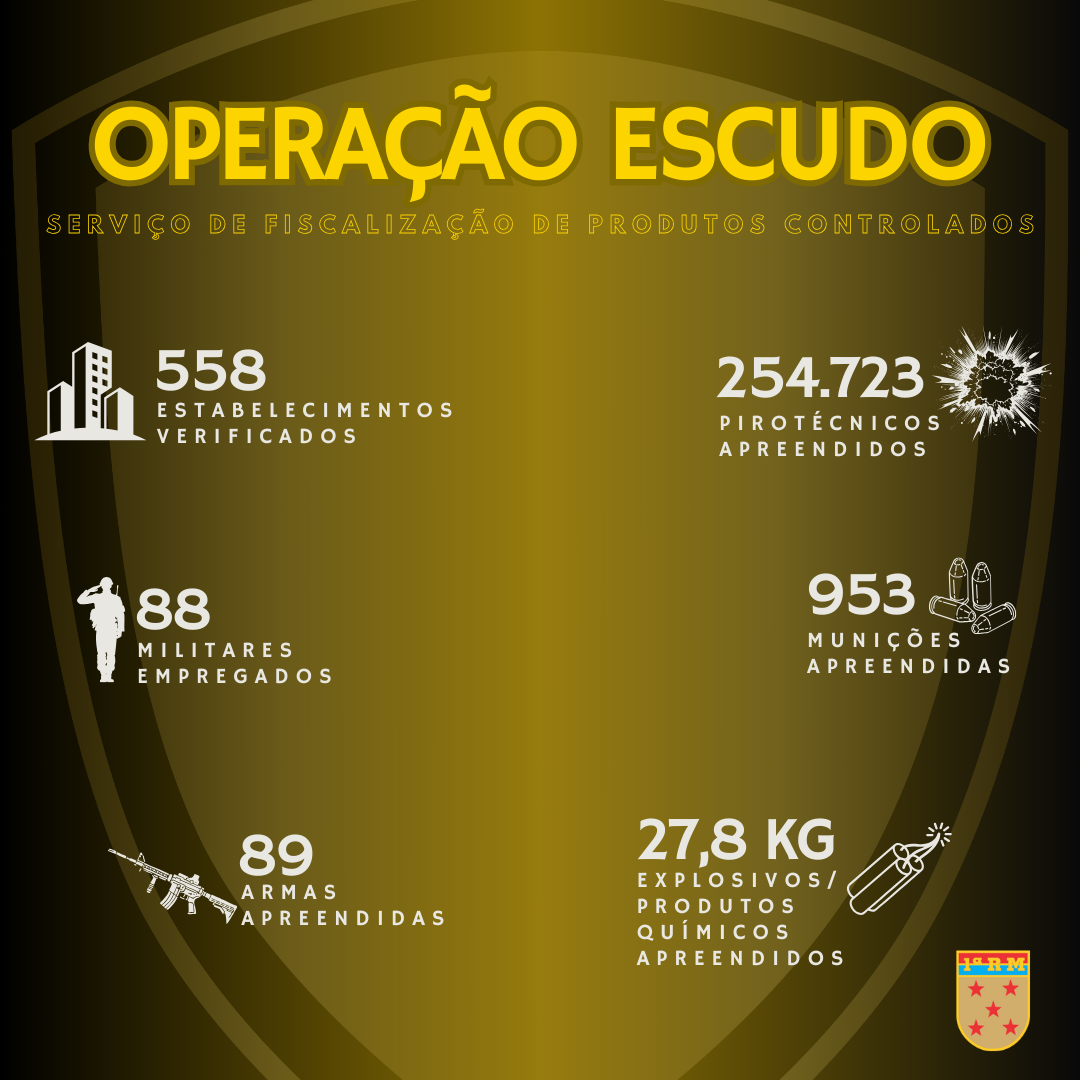 A Operação Escudo I foi conduzida pelo SFPC1 e coordenada pela 1ª Região Militar e pelo Comando Militar do Leste. O objetivo da ação foi reprimir e inibir irregularidades e ilícitos envolvendo Produtos Controlados pelo Exército, contribuindo para a preservação da ordem pública, a incolumidade das pessoas e do patrimônio, a prevenção de ilícitos e a segurança da população brasileira.