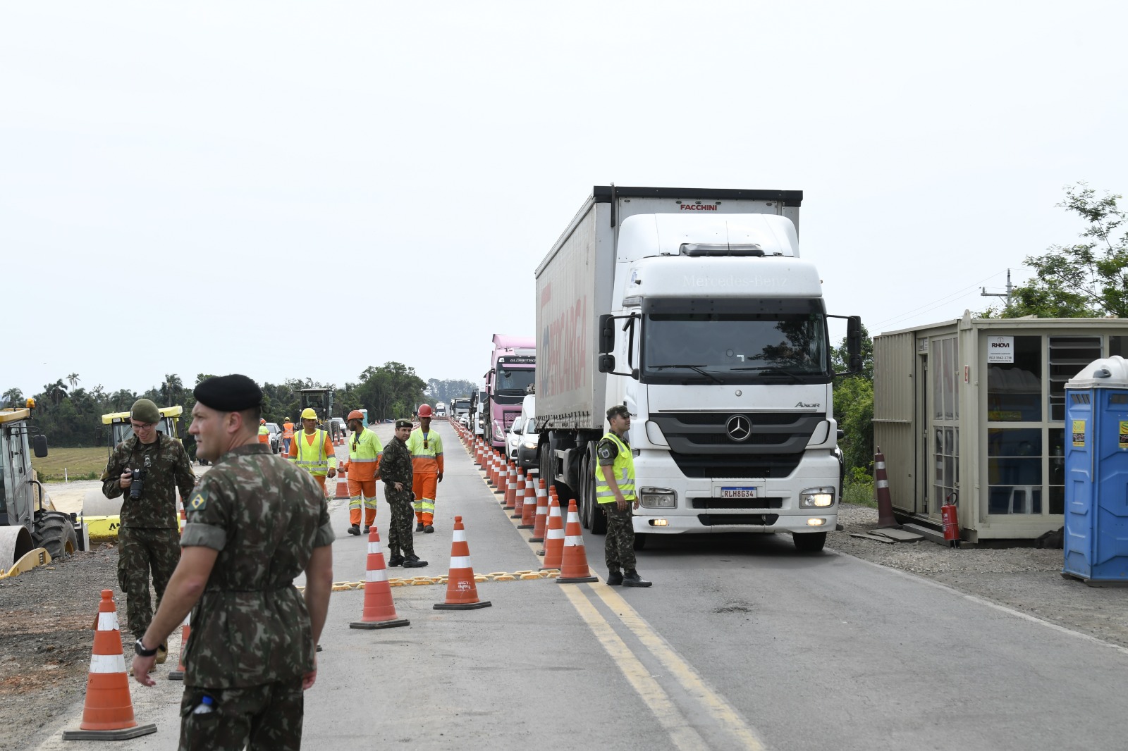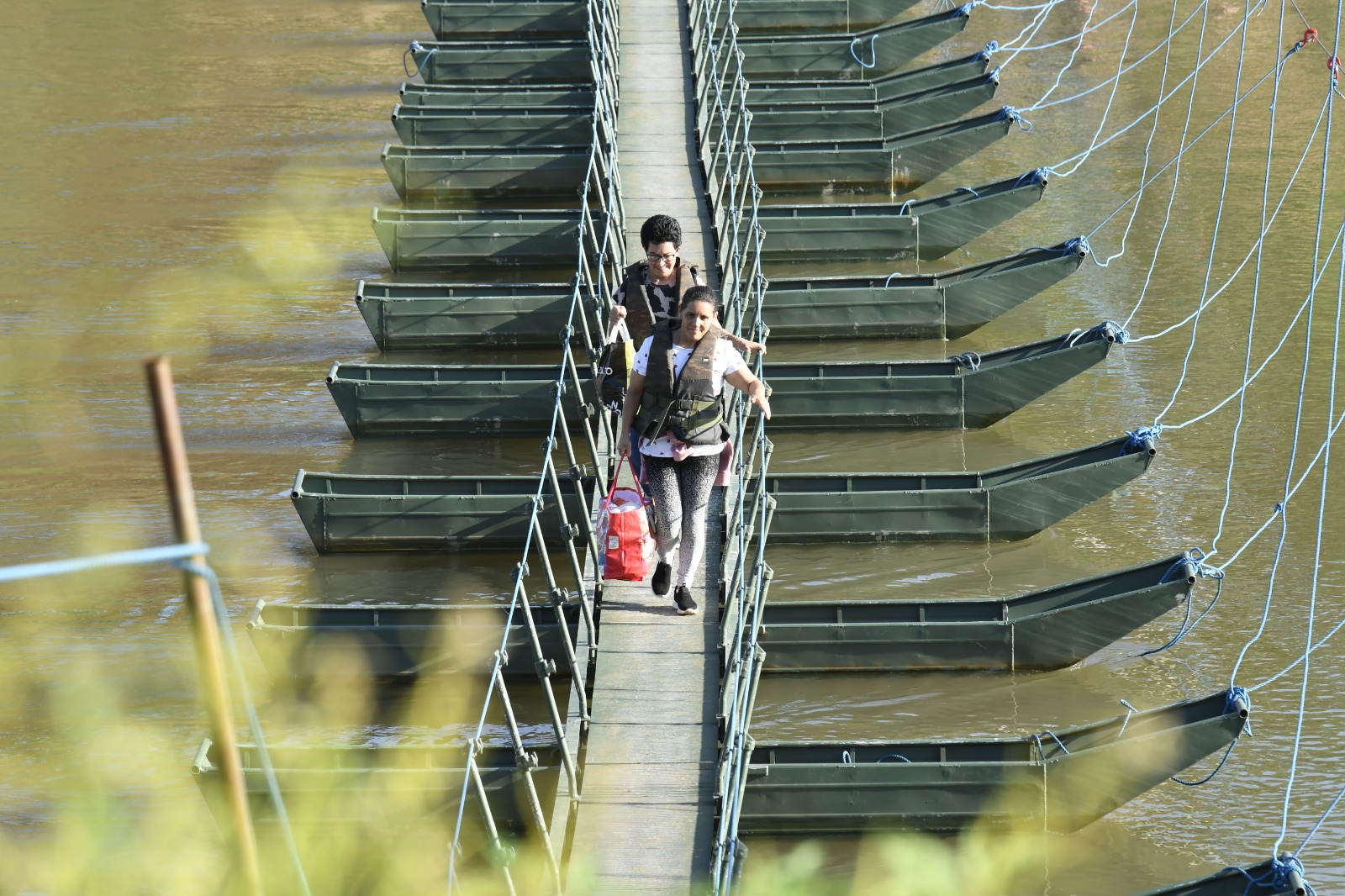Além disso, a comitiva também vistoriou a ponte logística lançada sobre o rio Forqueta, entre Arroio do Meio e Lajeado. O Comandante do 3° Batalhão de Engenharia de Combate, Tenente-Coronel Humberto Costa, salientou que a montagem desse acesso demonstrou as lições aprendidas ao longo da Operação Taquari 2. "A tropa vem se adestrando no decorrer da missão, colhendo aprendizados. Na ponte lançada em Santa Maria, que foi a primeira, foram dez dias de trabalho. Já nesta ponte em Lajeado, com a tropa mais adestrada, a montagem durou cinco dias", concluiu.