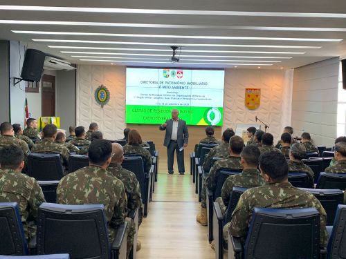 Rio de Janeiro (RJ) – A Diretoria de Patrimônio Imobiliário e Meio Ambiente (DPIMA) e a 1ª Região Militar (1ª RM) promoveram, nos dias 17 e 18 de setembro, o Workshop "Gestão de Resíduos Sólidos nas organizações milares da 1ª Região Militar: Desafios, Boas Práticas e Perspectivas Sustentáveis". O evento, realizado no Palácio Duque de Caxias, reuniu fiscais administrativos e fiscais de contratos da guarnição do Rio de Janeiro para discutir soluções e fortalecer as práticas sustentáveis no Exército Brasileiro.