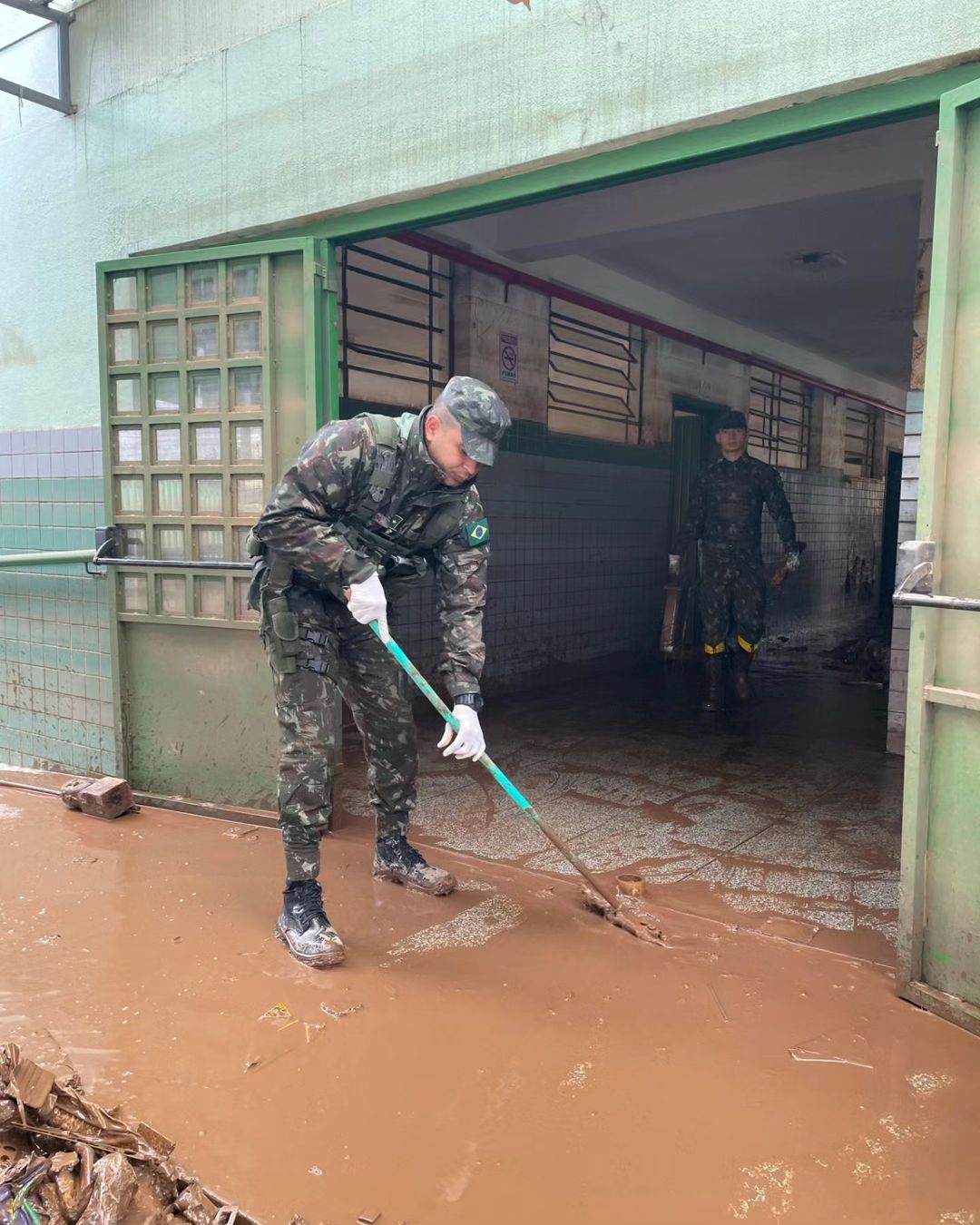Exército realiza a limpeza de escolas no Rio Grande do Sul