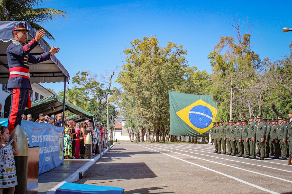 A cerimônia, presidida pelo Tenente-Coronel Rodrigo Costa Fedozzi, Comandante da EsIE, contou com a presença de autoridades, comandantes de organizações militares da Guarnição do Rio de Janeiro e Vila Militar, familiares e amigos dos formandos.