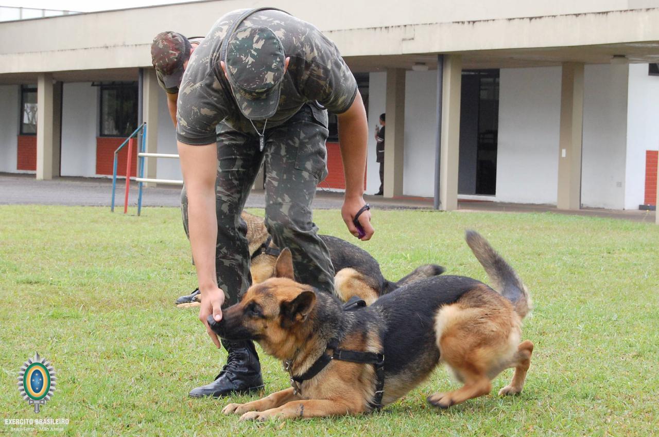Para o melhor desempenho das funções, os animais são adestrados pelos chamados cinófilos, militares capacitados para a condução do animal. Todos os anos, o Exército realiza estágios voltados tanto para militares voluntários quanto para adestradores, que passam cinco semanas aprendendo desde os comandos básicos aos mais avançados. Atualmente, o Exército possui dois centros de reprodução e distribuição de caninos: um em Osasco (SP) e outro em Brasília (DF). Para as atividades militares, a Força tem trabalhado com cães de raças diversas como Rotweiller, Labrador, Dobermann, Pastor Alemão e Pastor Belga Malinois.