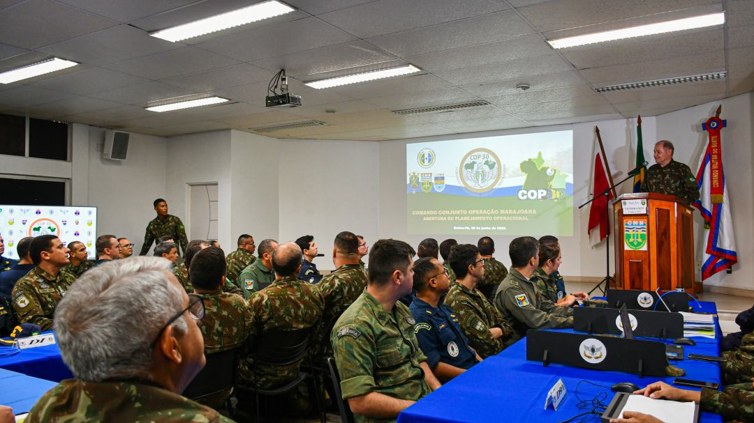 Belém (PA) – Em uma demonstração de prontidão e capacidade operacional, o Ministério da Defesa, em coordenação com a Marinha do Brasil, o Exército Brasileiro e a Força Aérea Brasileira, ativou no dia 9 de junho, no auditório do Comando Militar do Norte, o Comando Operacional Conjunto Marajoara. A estrutura será responsável por coordenar as ações de segurança e defesa durante a 30ª Conferência das Partes da Convenção-Quadro das Nações Unidas sobre Mudança do Clima (COP 30), prevista para novembro deste ano, em Belém.