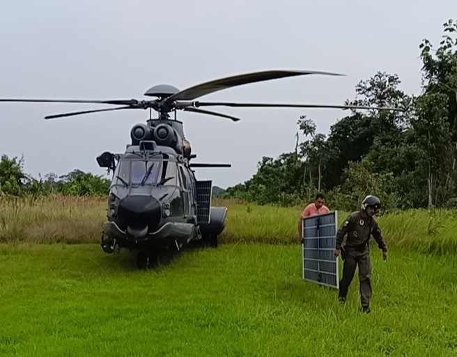 Acerca das placas fotovoltaicas, as Forças Armadas já transportaram unidades para as seguintes localidades: Cachoeira do Aracá, Halikato-u, Budu-ú, Korekorema, kayanaú, Pewaú, Ketaa e Uraricoera. Para tanto, foram voadas cerca de 20 horas nos helicópteros UH-15 “Super Cougar” da MB e H-60 “Black Hawk” da FAB, perfazendo um percurso aproximado de 4.000 km. O projeto, que é uma parceria dos Ministérios da Saúde, das Minas e Energia e da distribuidora local Roraima Energia, visa fornecer iluminação sustentável para as comunidades indígenas, que atualmente funcionam por intermédio de geradores a combustão.