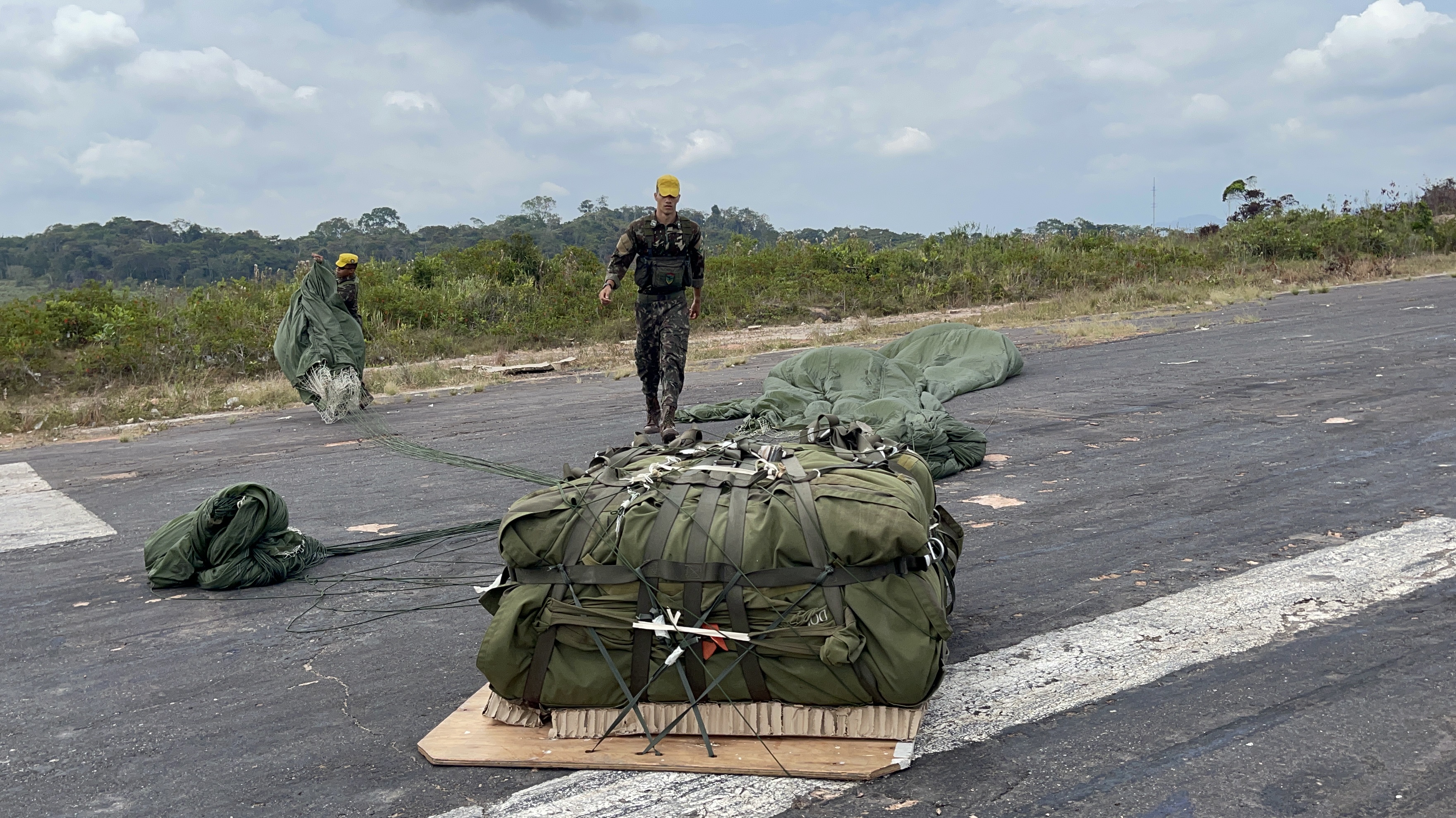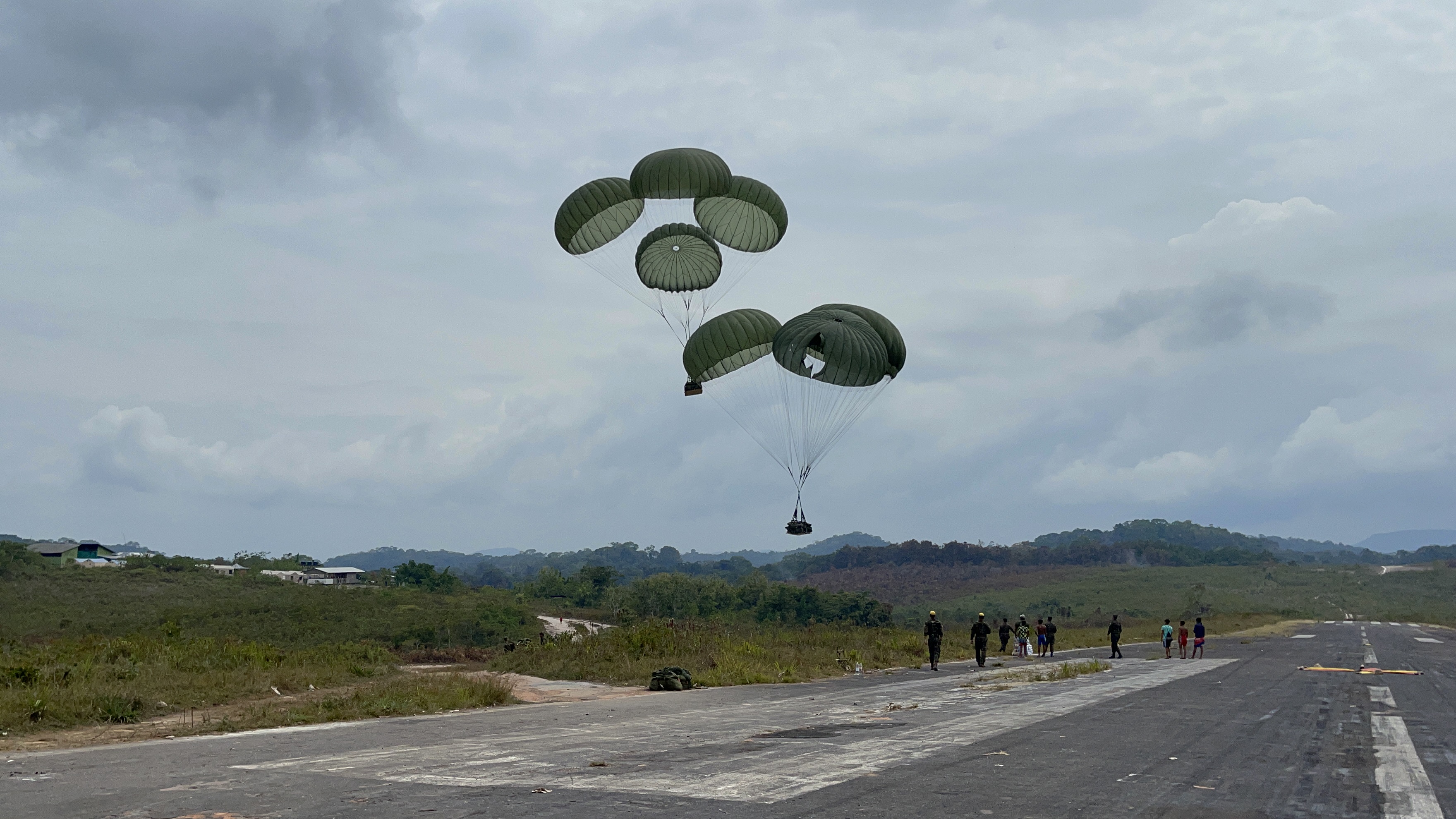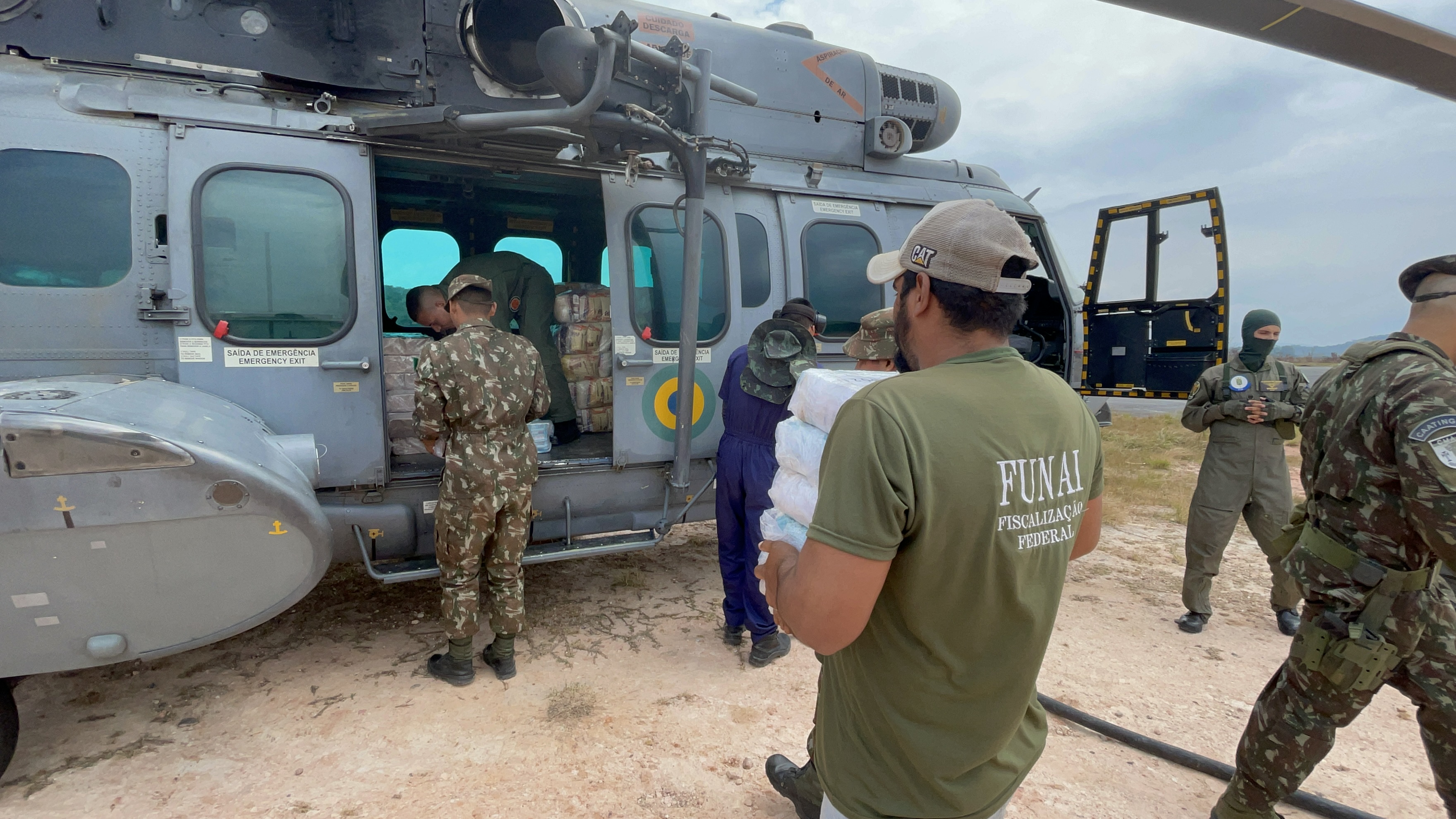 Após o lançamento, os militares recebem as cestas em solo e as preparam para embarcar em aeronaves como o UH-15 – Super Cougar, da Marinha do Brasil, e o HM-1 Pantera, do Exército Brasileiro. Nessas aeronaves os alimentos são levados até as comunidades indígenas, onde agentes da Fundação Nacional dos Povos Indígenas (FUNAI) realizam as entregas aos indígenas isolados.